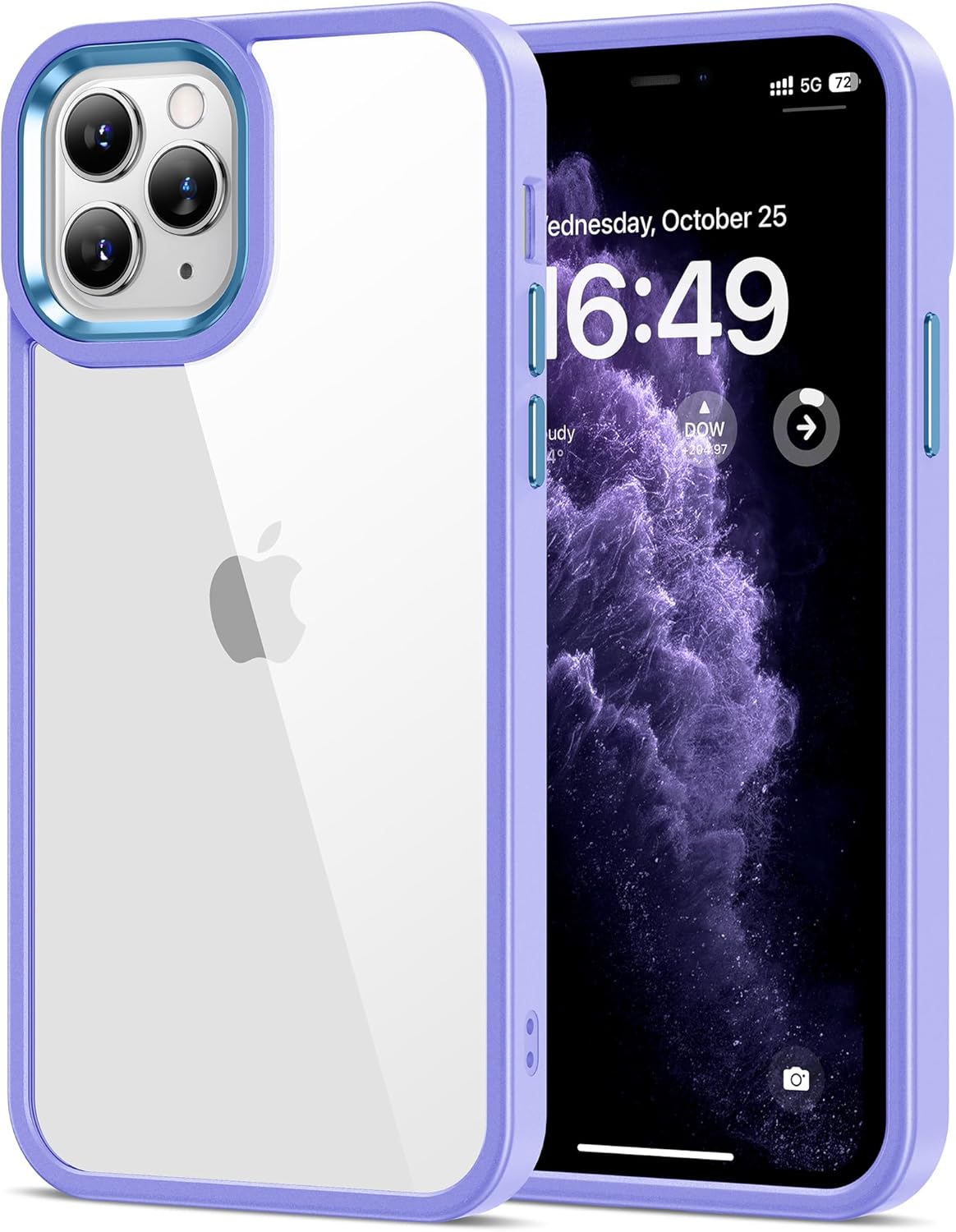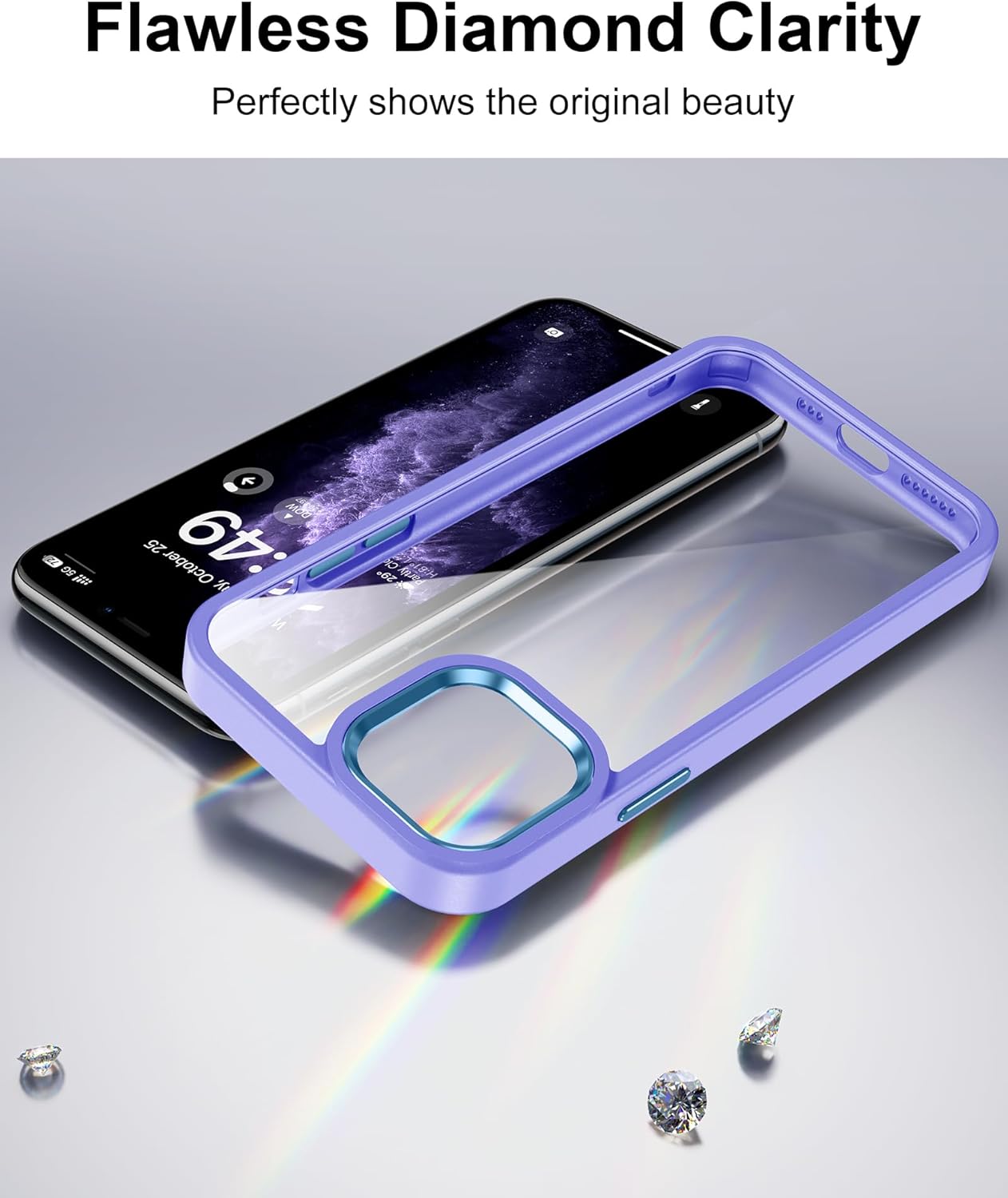 HOOMIL Кристално прозрачен калъф за iPhone 11 Pro Max, [Анти жълт] [Военен удароустойчив] Прозрачен защитен калъф за гръб - светло лилав