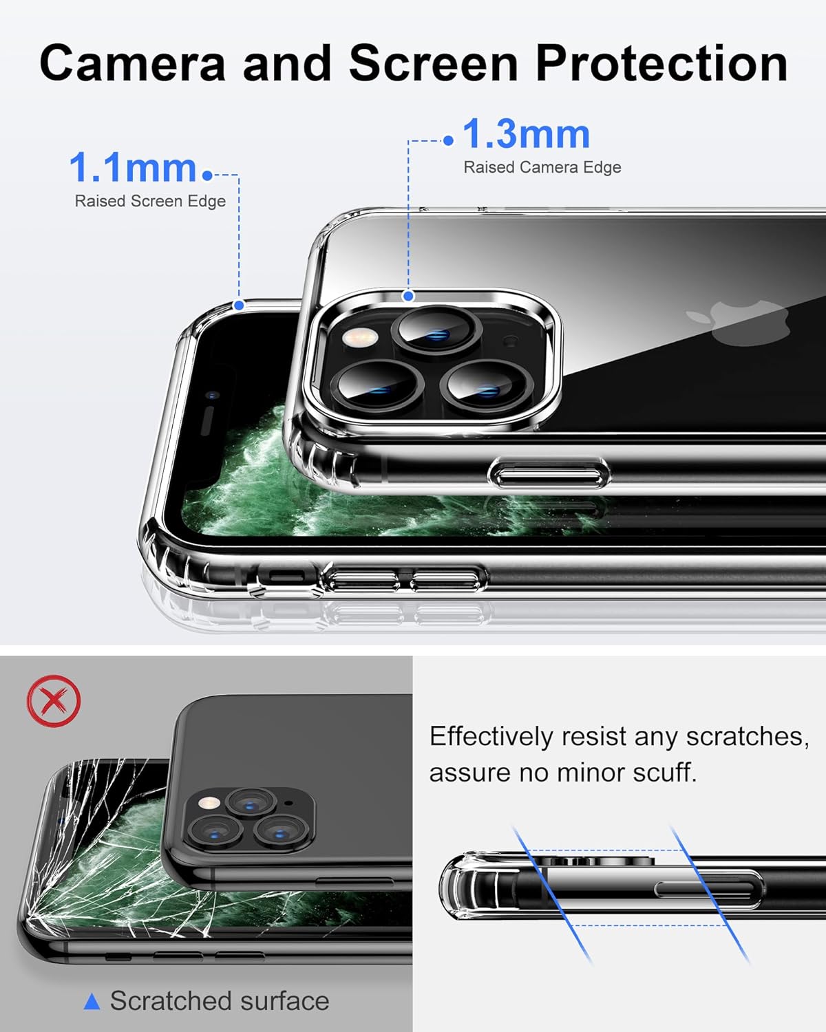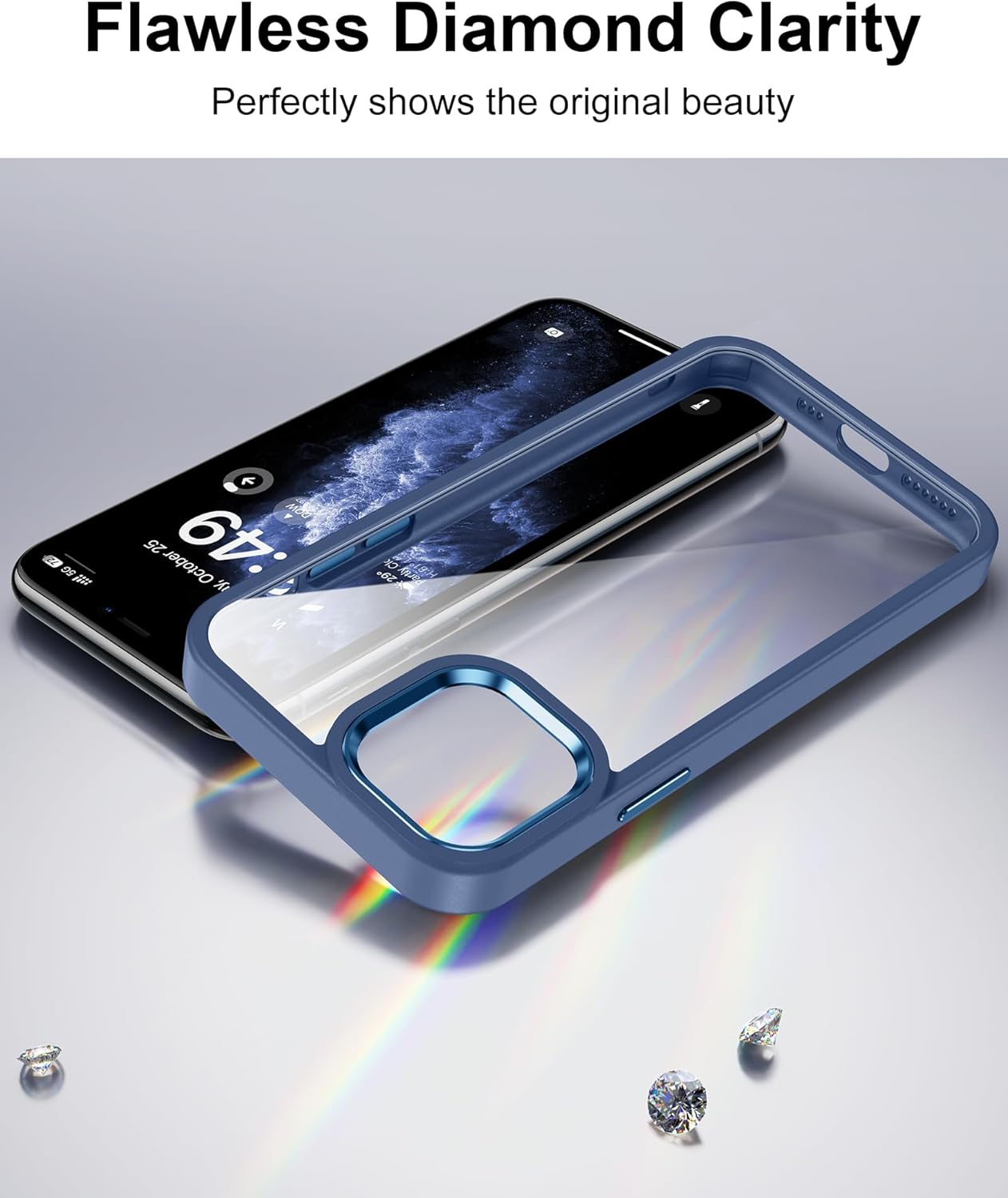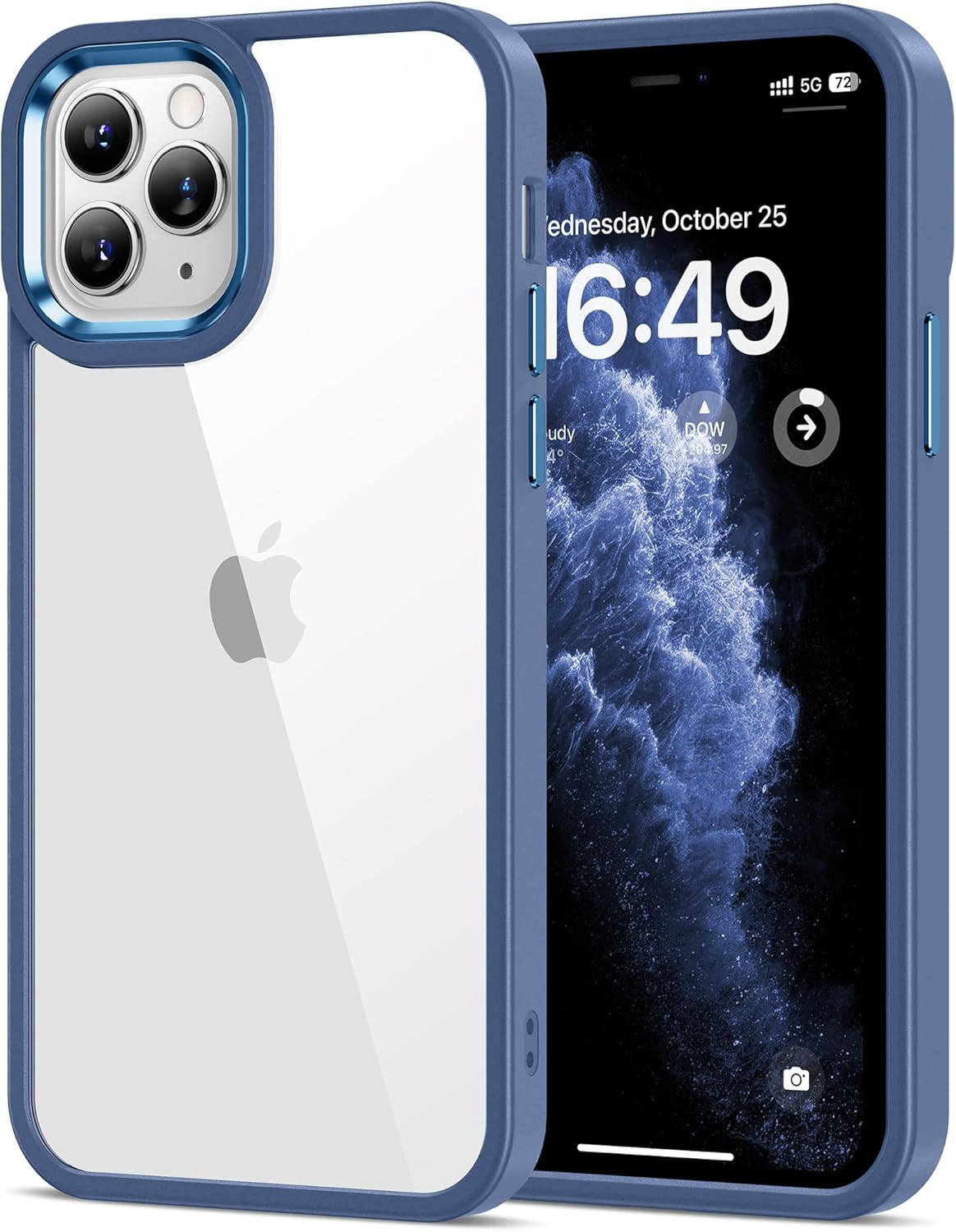 HOOMIL Кристално прозрачен калъф за iPhone 11 Pro Max, [Анти жълт] [Военен удароустойчив] Прозрачен защитен калъф за гръб - светло син