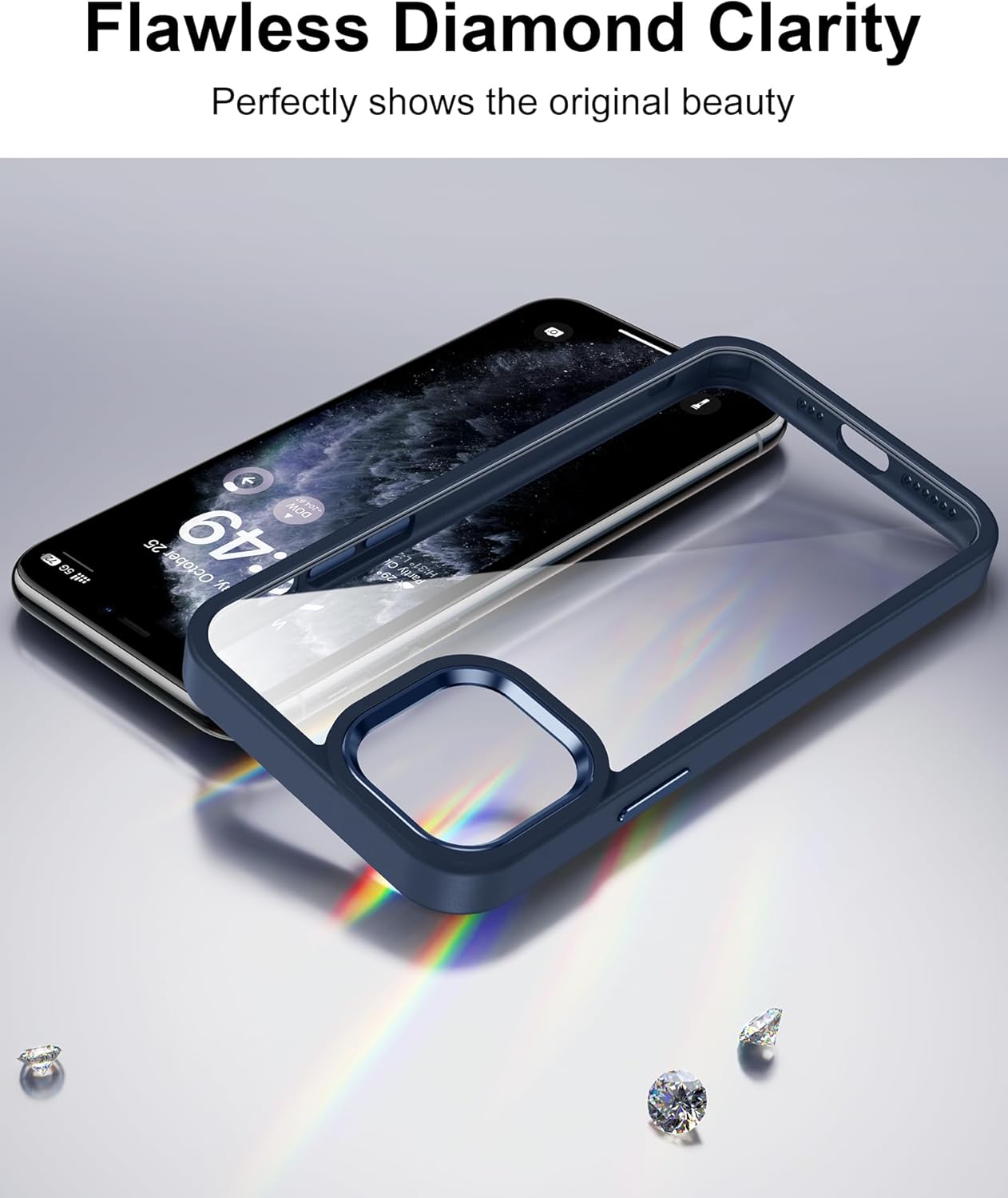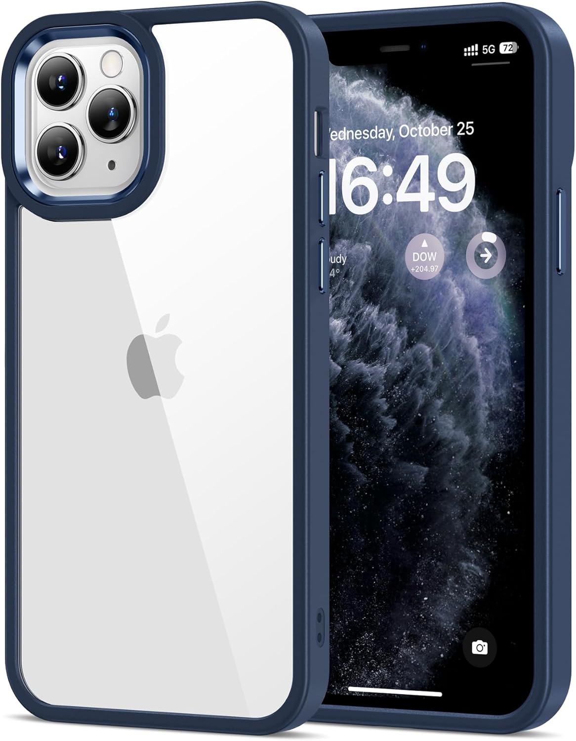 HOOMIL Кристално прозрачен калъф за iPhone 11 Pro Max, [Анти жълт] [Военен удароустойчив] Прозрачен защитен калъф за гръб - тъмносин