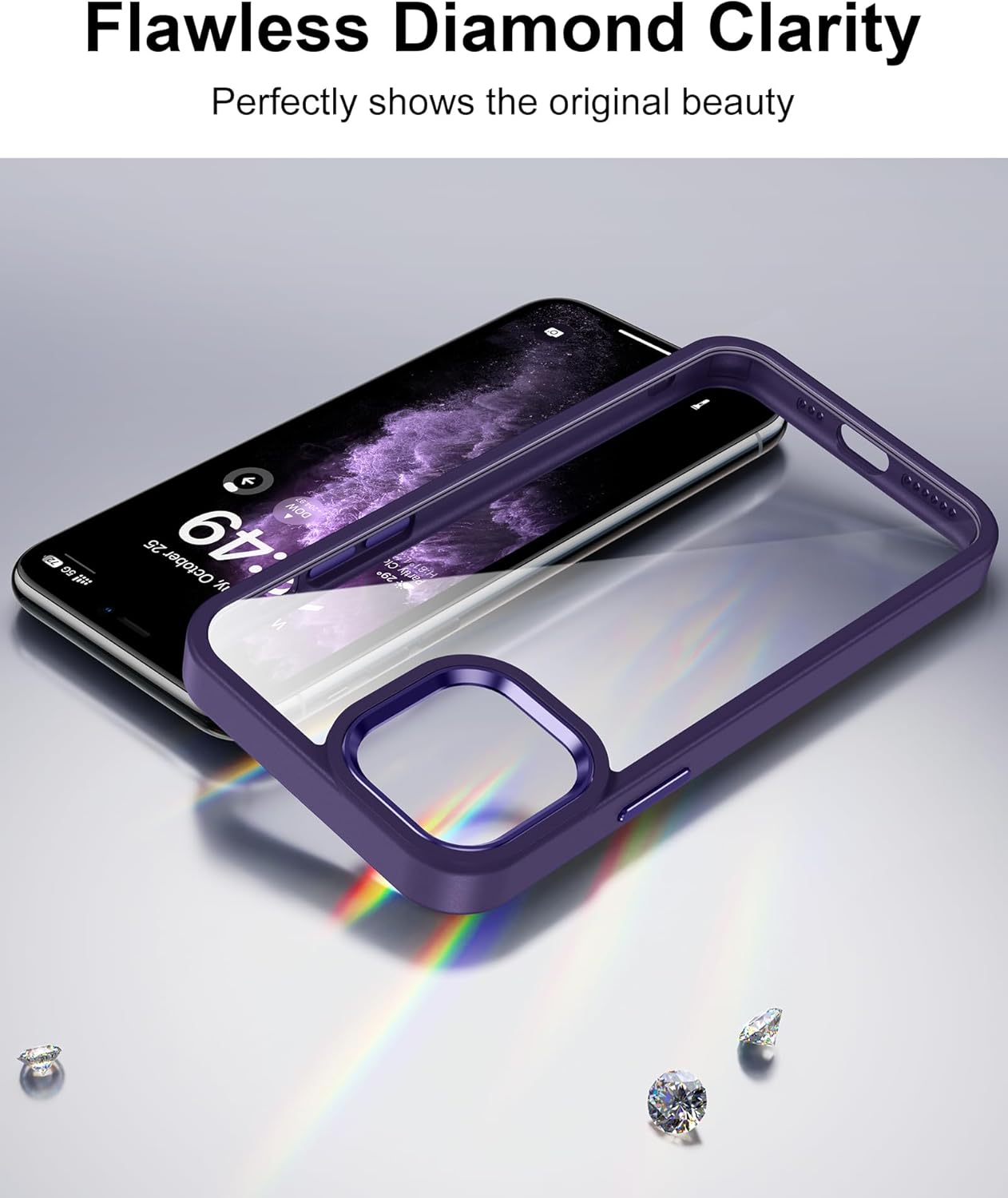 HOOMIL Кристално прозрачен калъф за iPhone 11 Pro Max, никога пожълтяващ прозрачен калъф за мобилен телефон - лилав