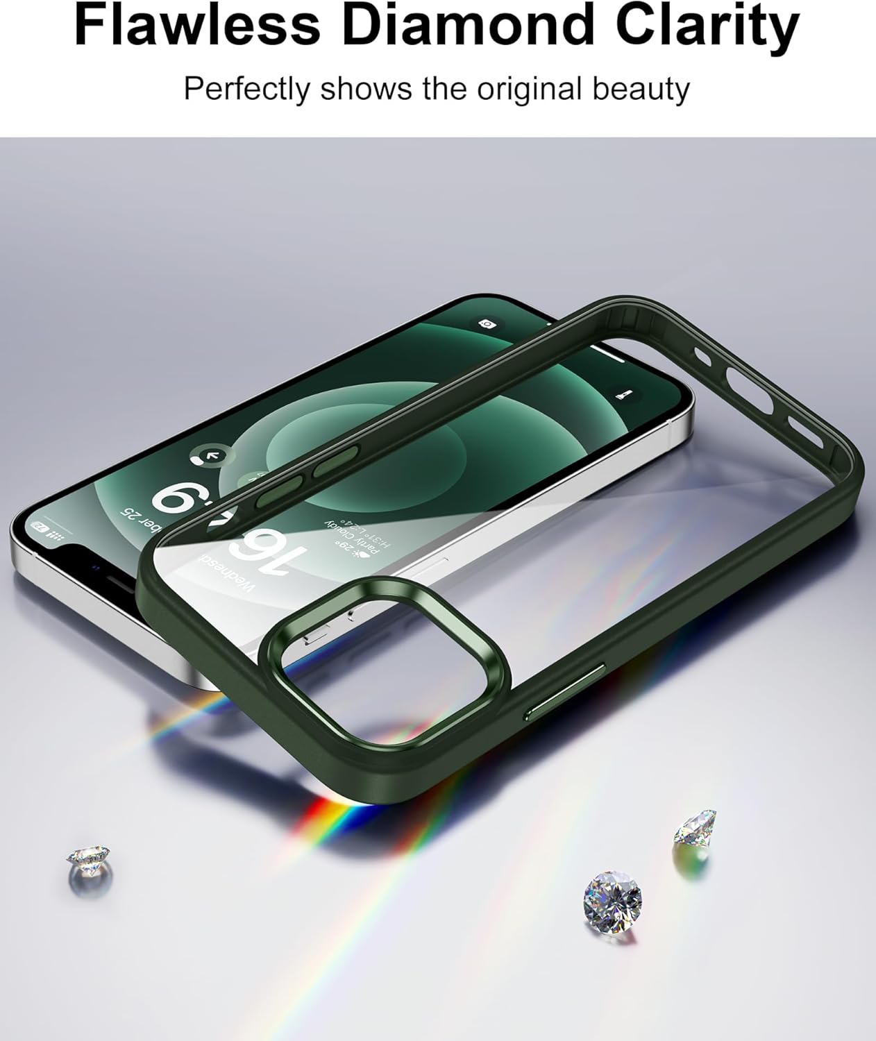 HOOMIL Кристално прозрачен калъф за iPhone 12 Mini, антижълт прозрачен калъф за мобилен телефон, удароустойчив защитен калъф - зелен