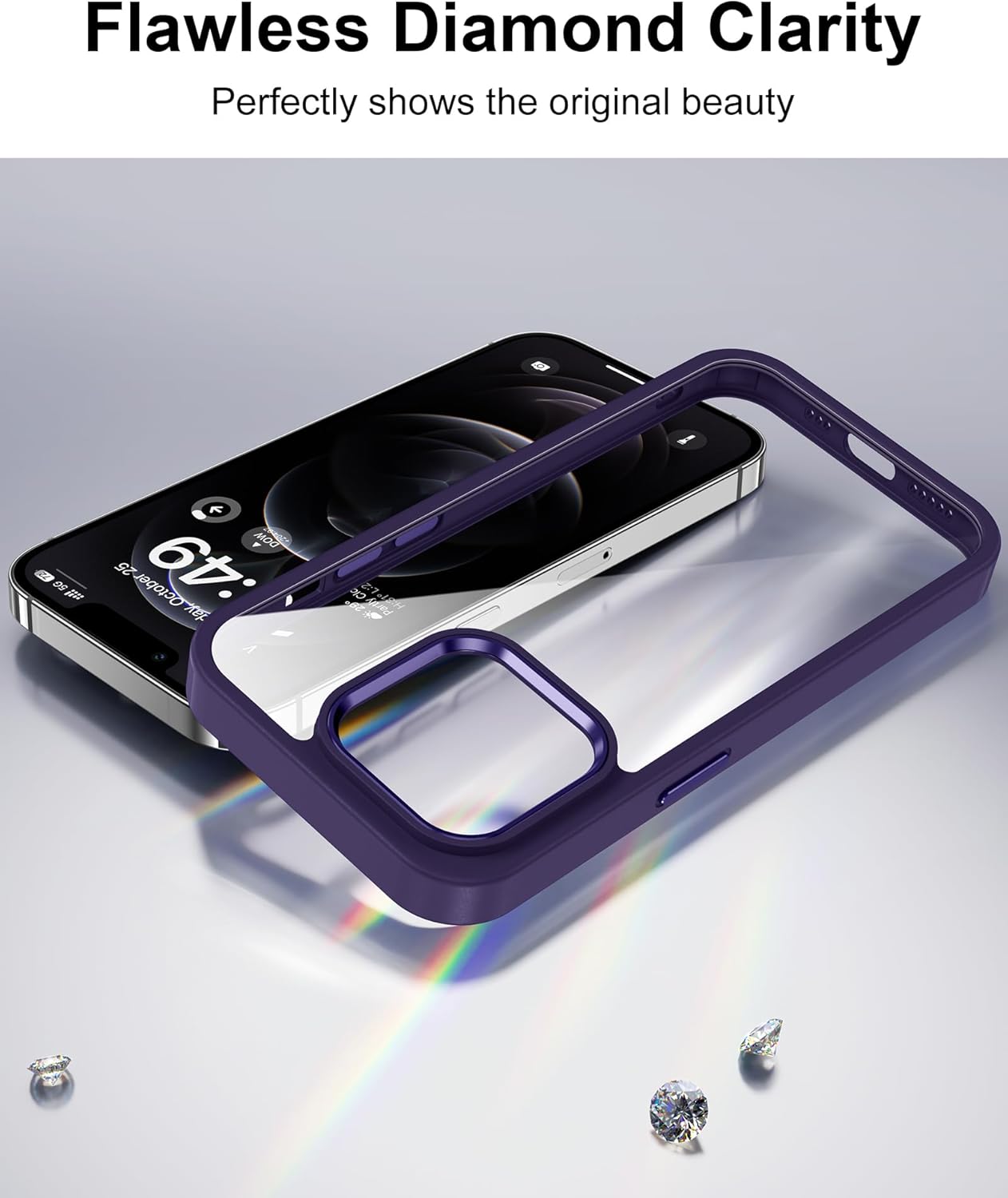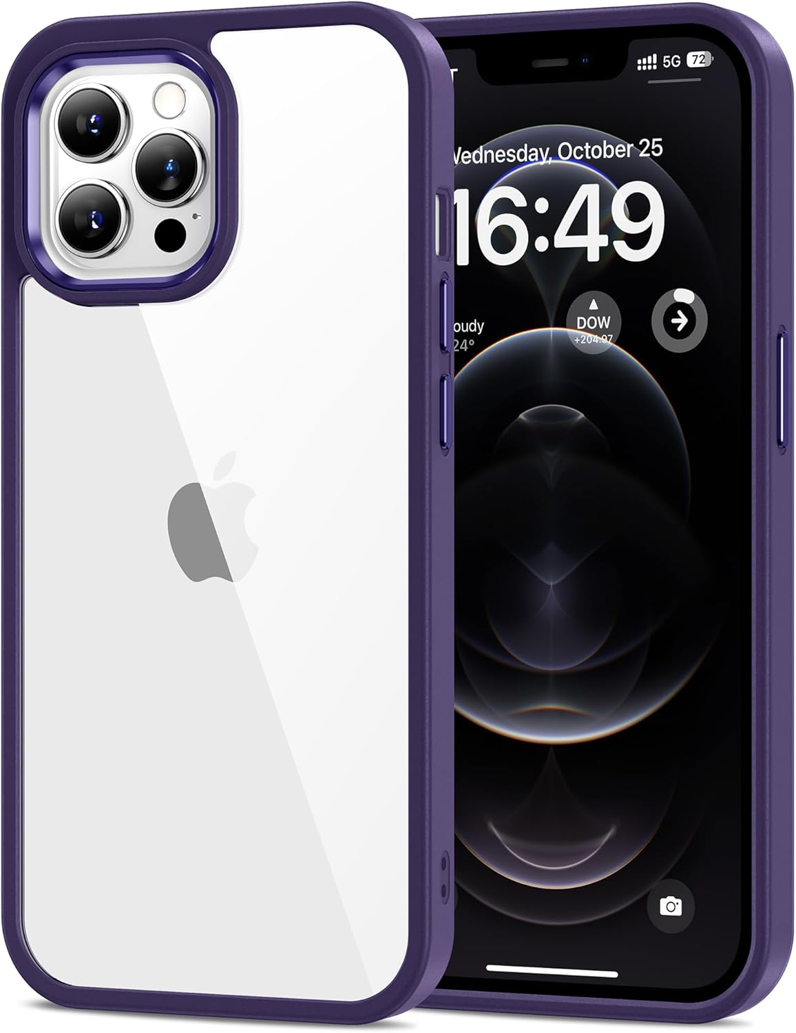 HOOMIL Кристално прозрачен калъф за iPhone 12 Pro Max, антижълт прозрачен калъф за мобилен телефон, твърд, удароустойчив, защитен калъф - лилав