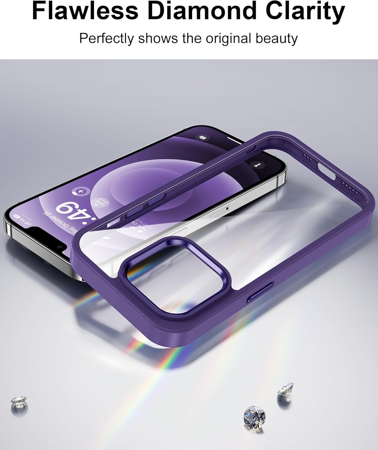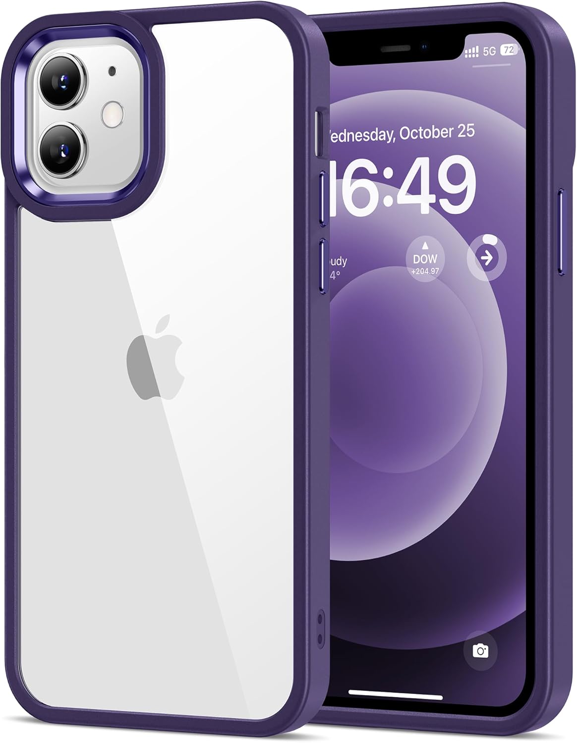 HOOMIL Кристално прозрачен калъф за iPhone 12/iPhone 12 Pro, антижълт прозрачен калъф за мобилен телефон, твърд, удароустойчив, защитен калъф - лилав