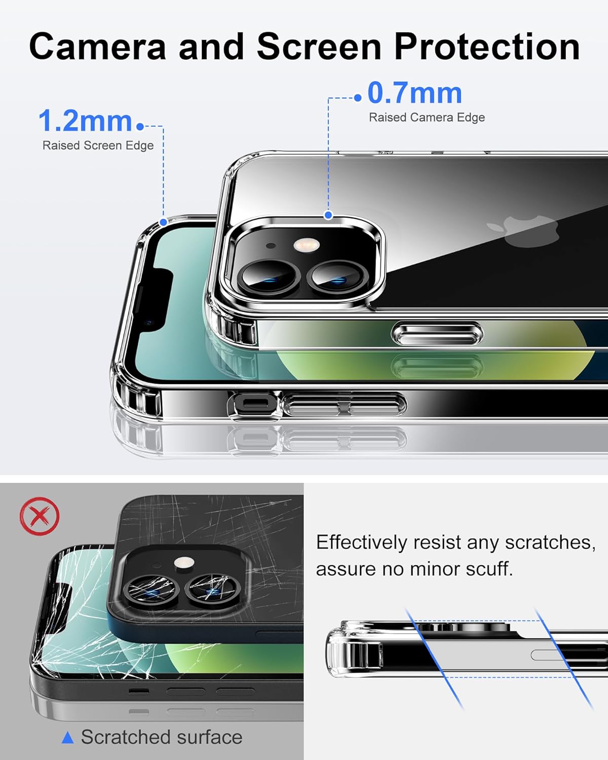 • Стандартна военна защита: уникален удароустойчив дизайн; 4-те ъгъла ефективно абсорбират ударите, а повдигнатите ръбове напълно предпазват екрана и камерата от падане върху плоски повърхности.