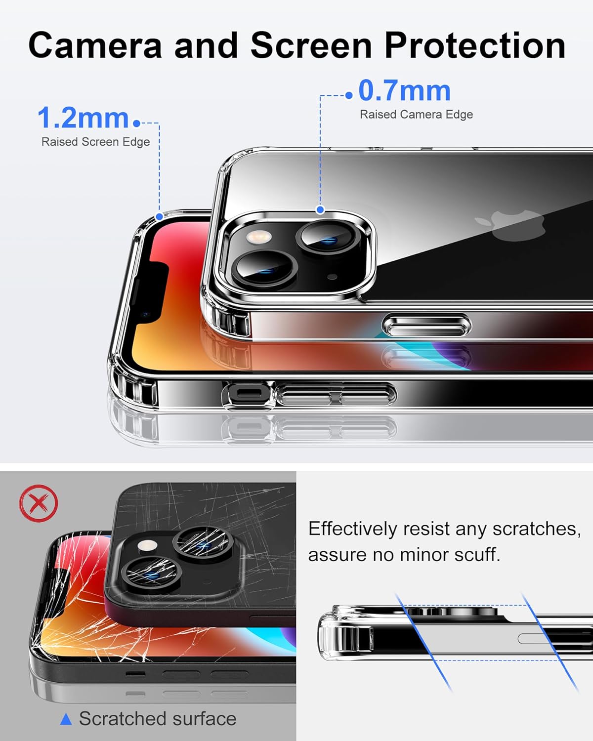 • Стандартна военна защита: уникален удароустойчив дизайн; 4-те ъгъла ефективно абсорбират ударите, а повдигнатите ръбове напълно предпазват екрана и камерата от падане върху плоски повърхности.