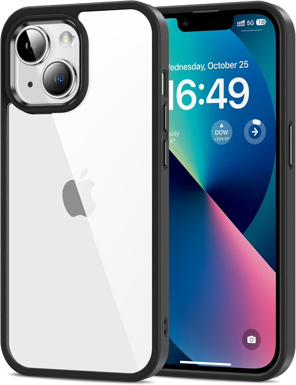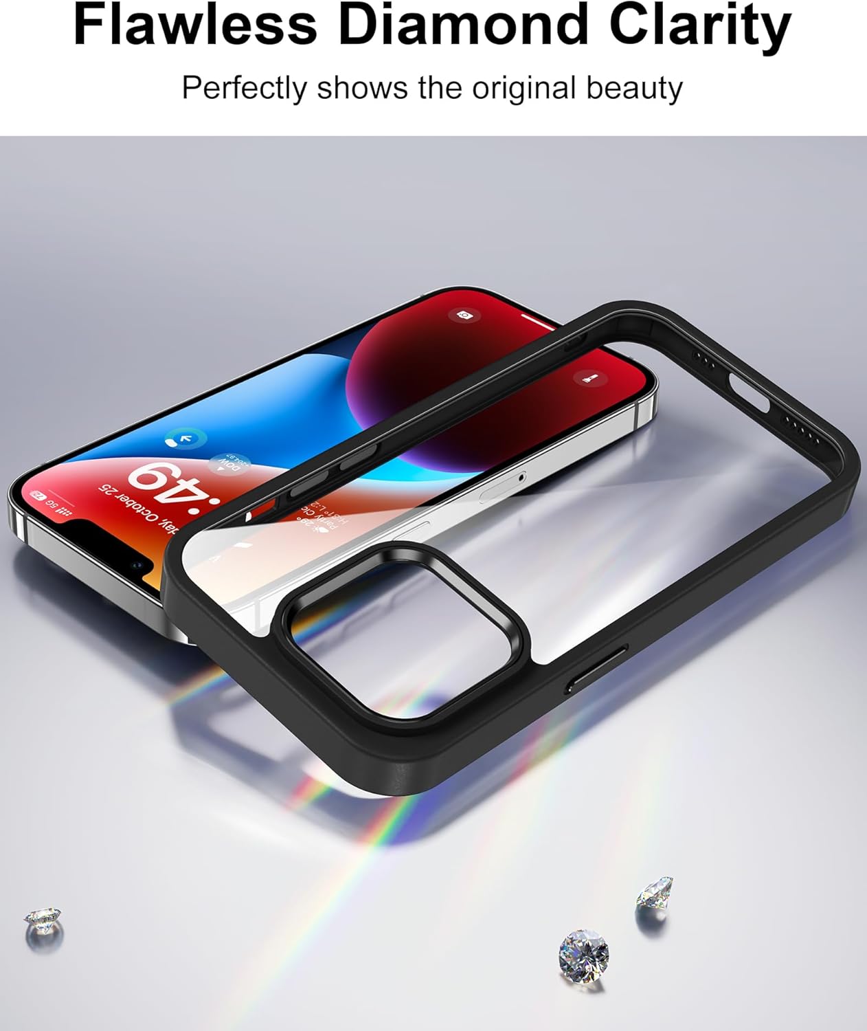 HOOMIL Кристално прозрачен калъф за iPhone 13 6.1 инча, никога пожълтяващ прозрачен - черен