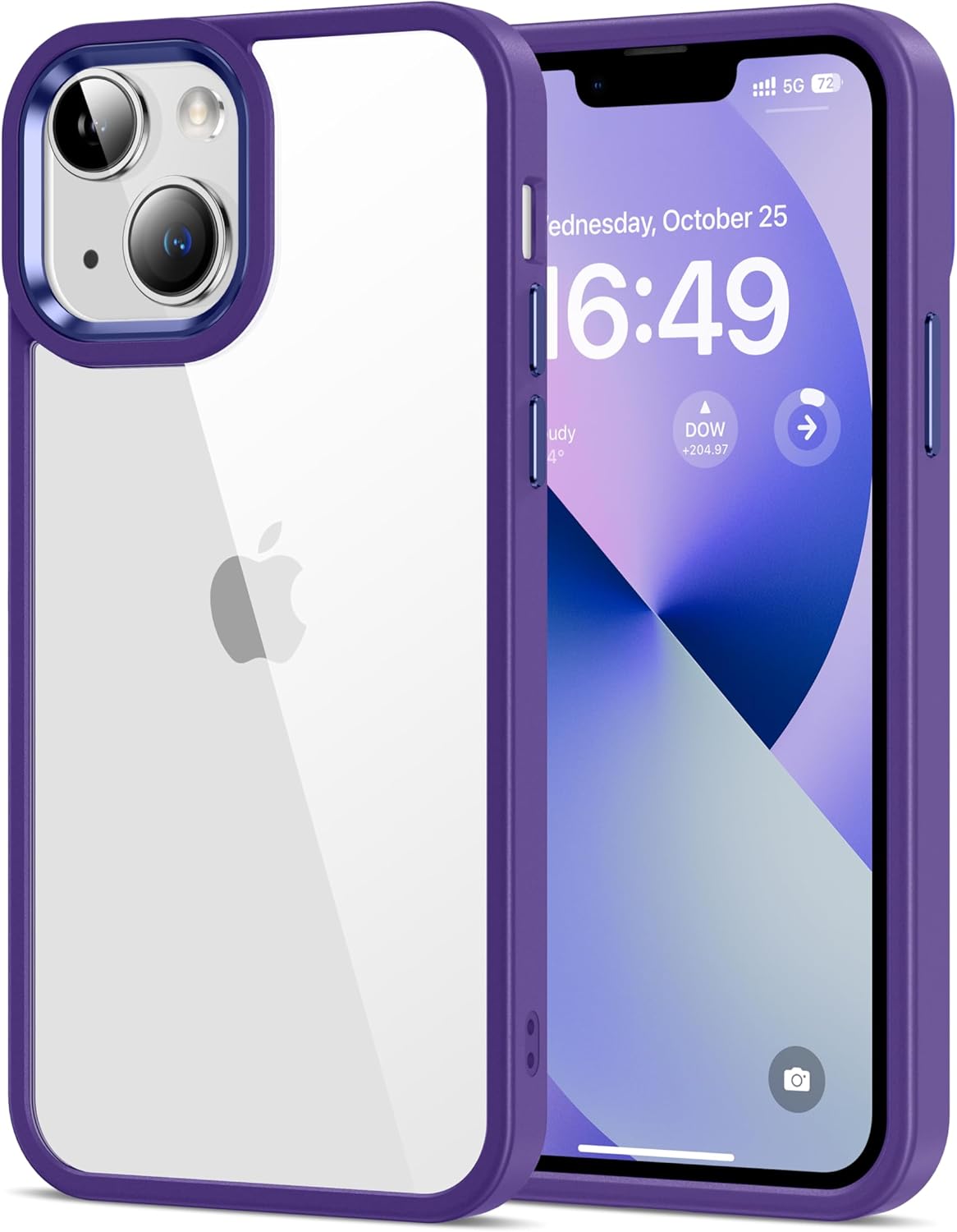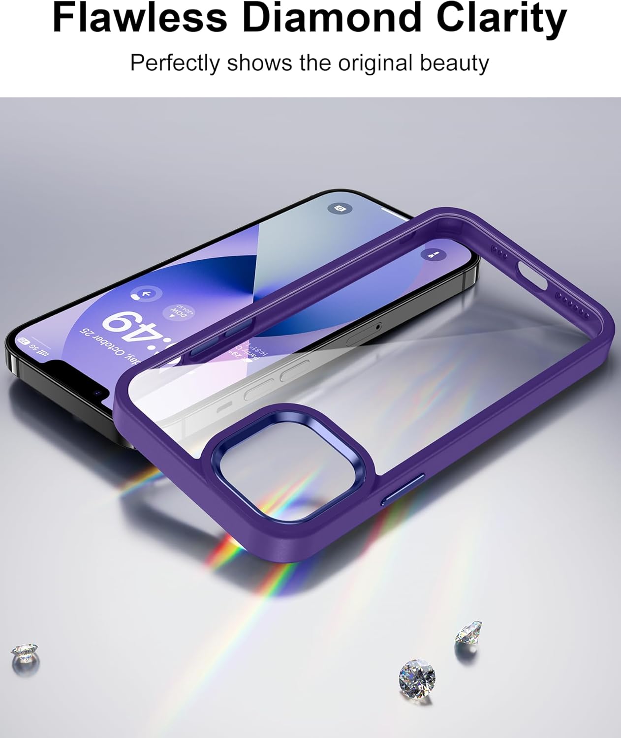 HOOMIL Кристално прозрачен калъф за iPhone 13 6.1 инча, никога пожълтяващ прозрачен - лилав