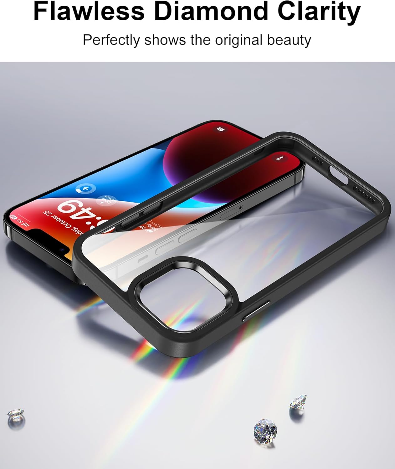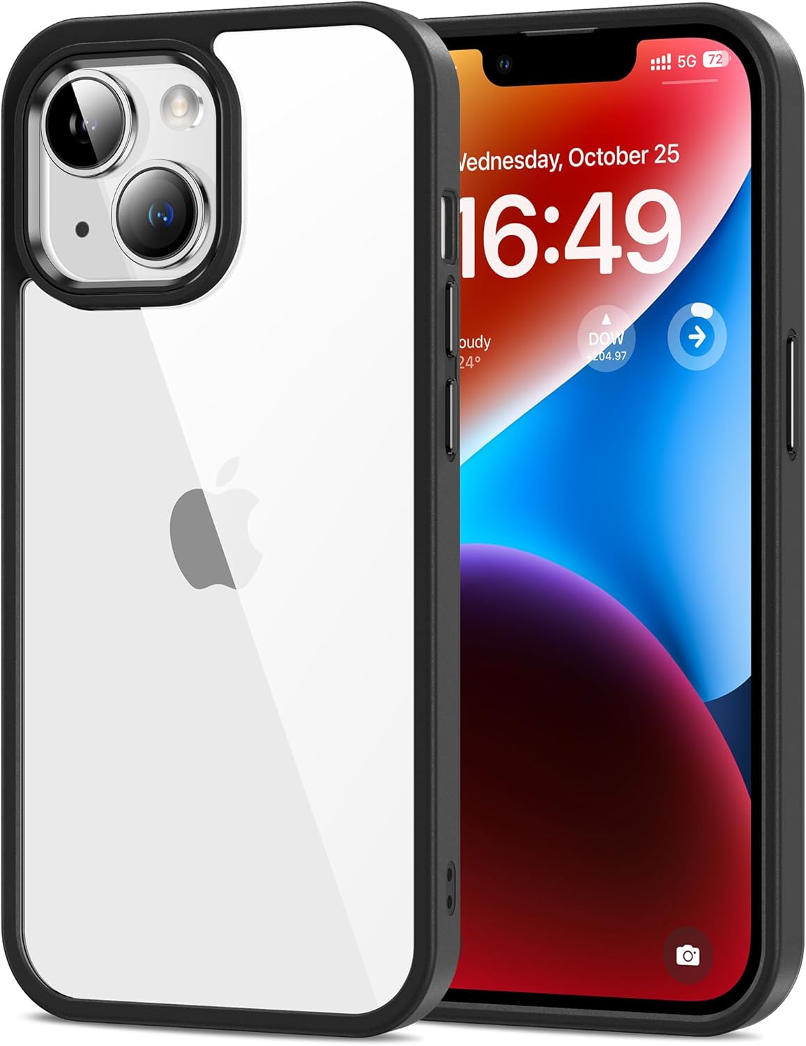 HOOMIL Кристално прозрачен калъф за iPhone 14, [Никога не пожълтява] [Удароустойчив във военен стил] Прозрачен защитен калъф за гръб - черен