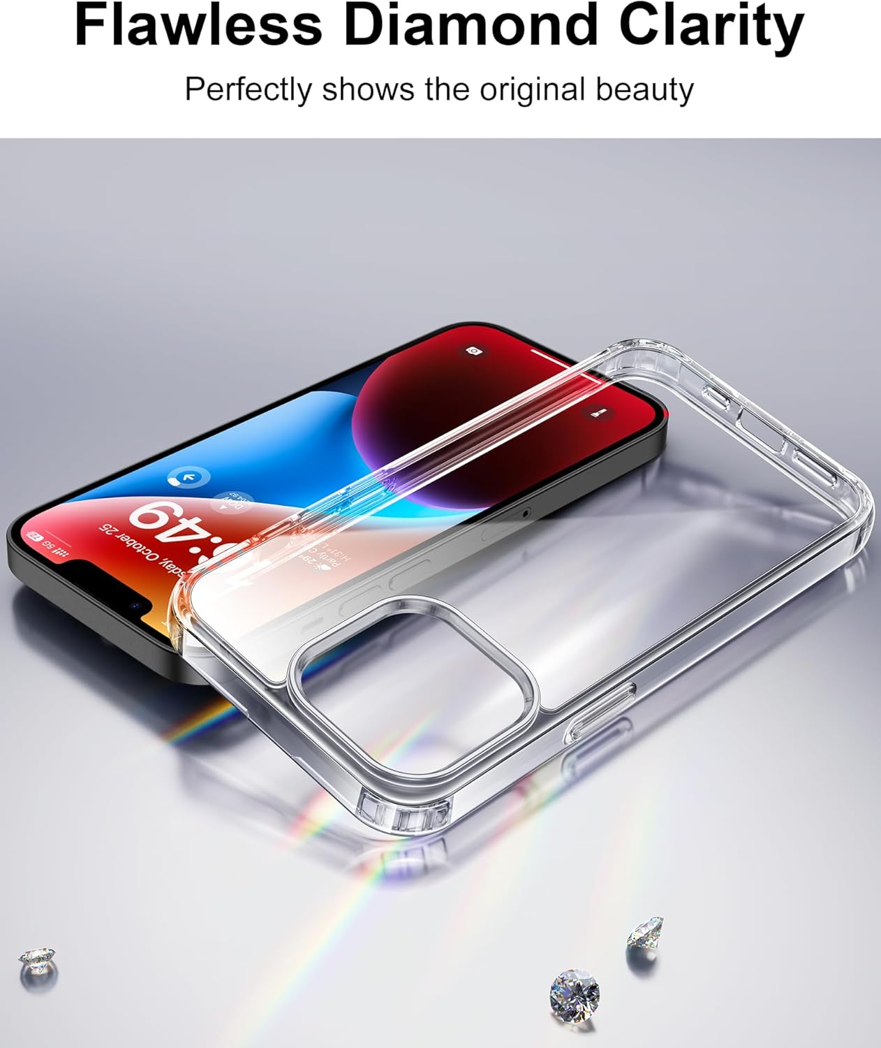 HOOMIL Кристално прозрачен калъф за iPhone 14, никога пожълтява, прозрачен калъф за мобилен телефон, удароустойчив защитен калъф - прозрачен