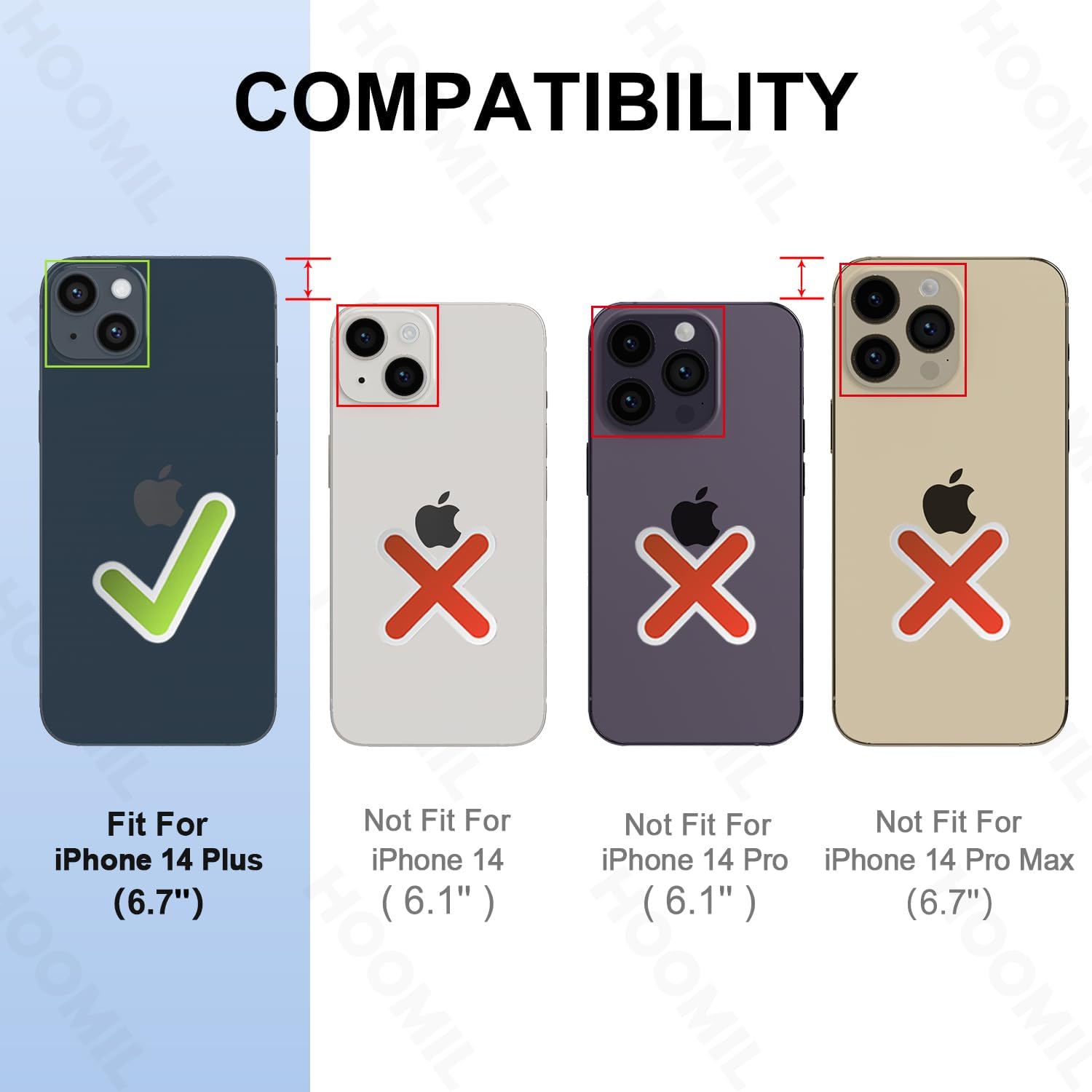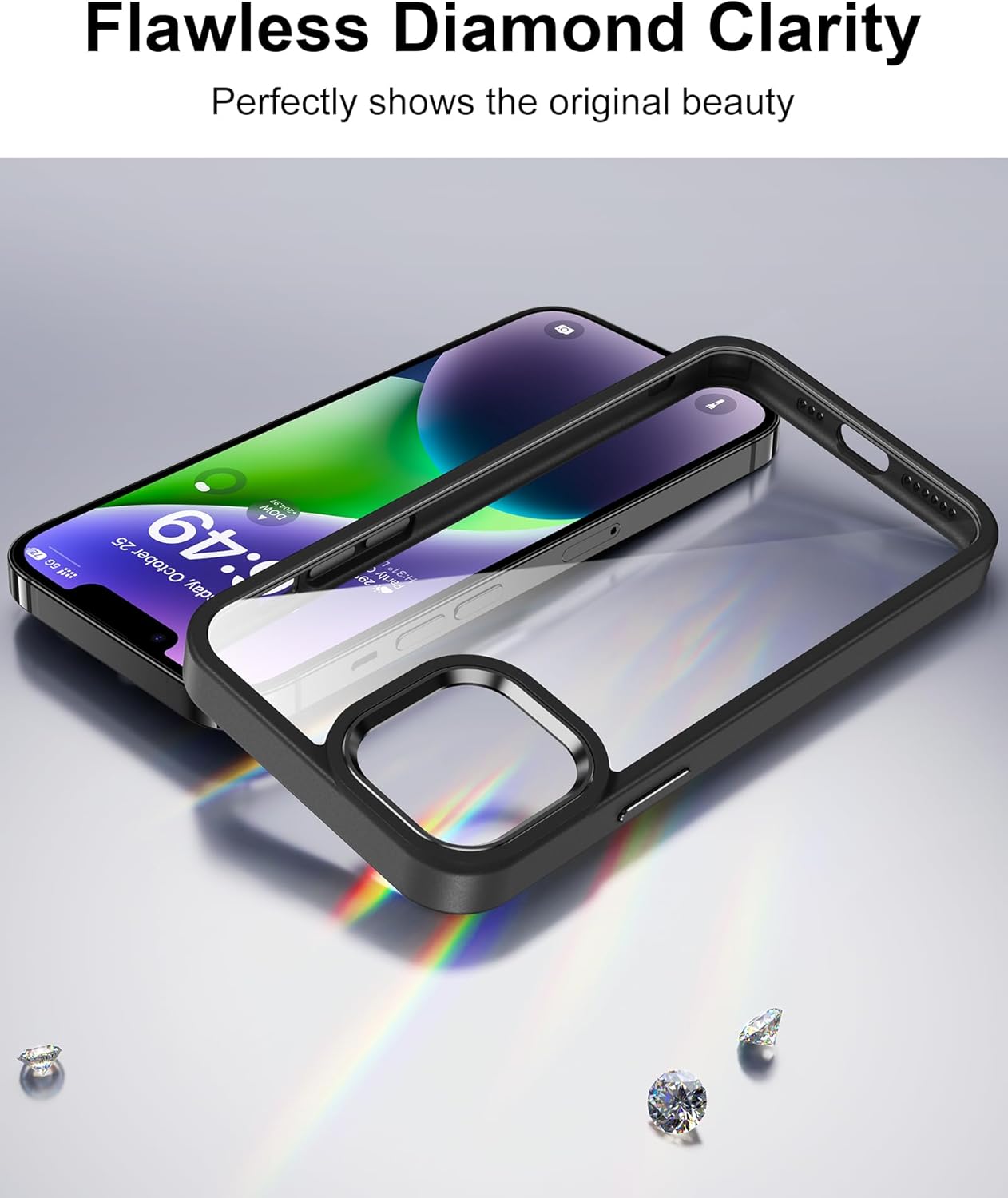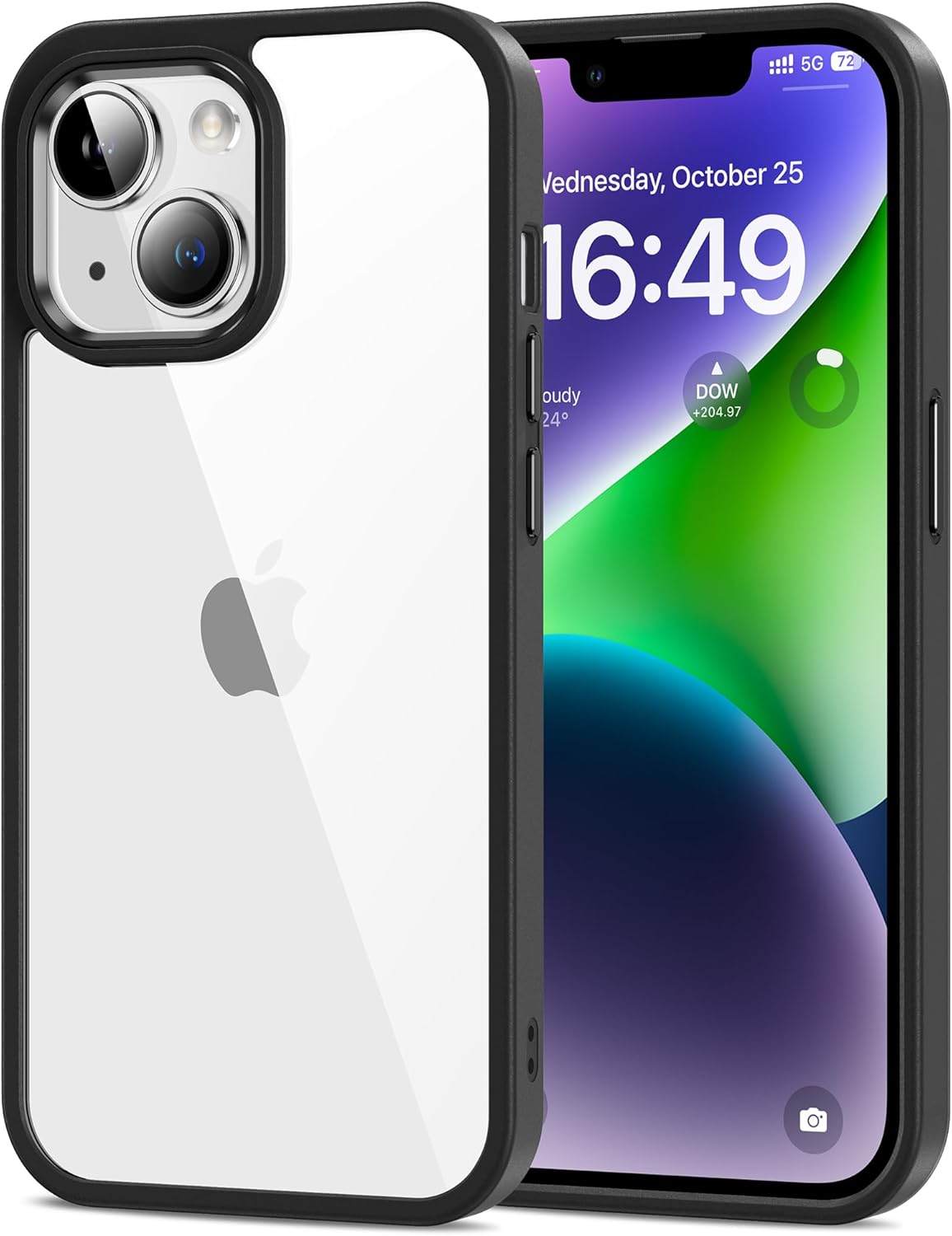 HOOMIL Кристално прозрачен калъф за iPhone 14 Plus, никога не пожълтява, удароустойчив във военен стил, прозрачен защитен калъф за гръб, черен