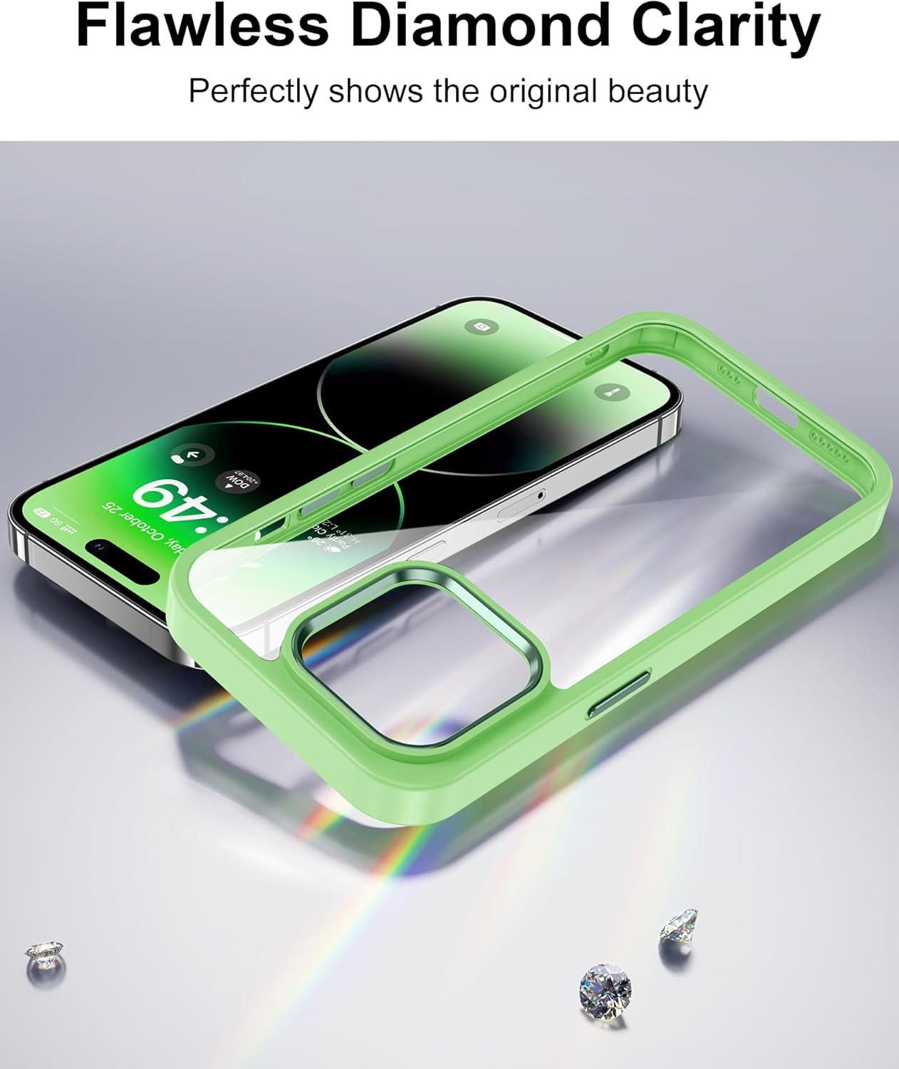 HOOMIL Кристално прозрачен калъф за iPhone 14 Pro Max, [Никога не пожълтява] [Удароустойчив във военен стил] Прозрачен защитен калъф за гръб - зелен