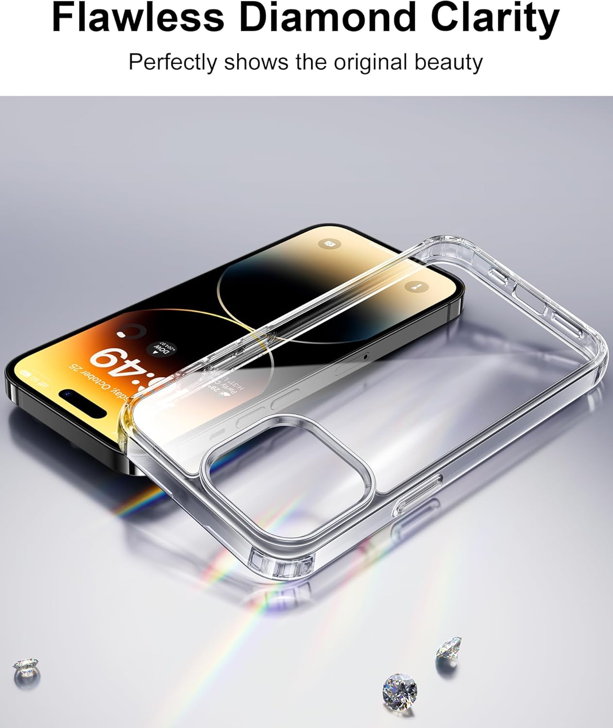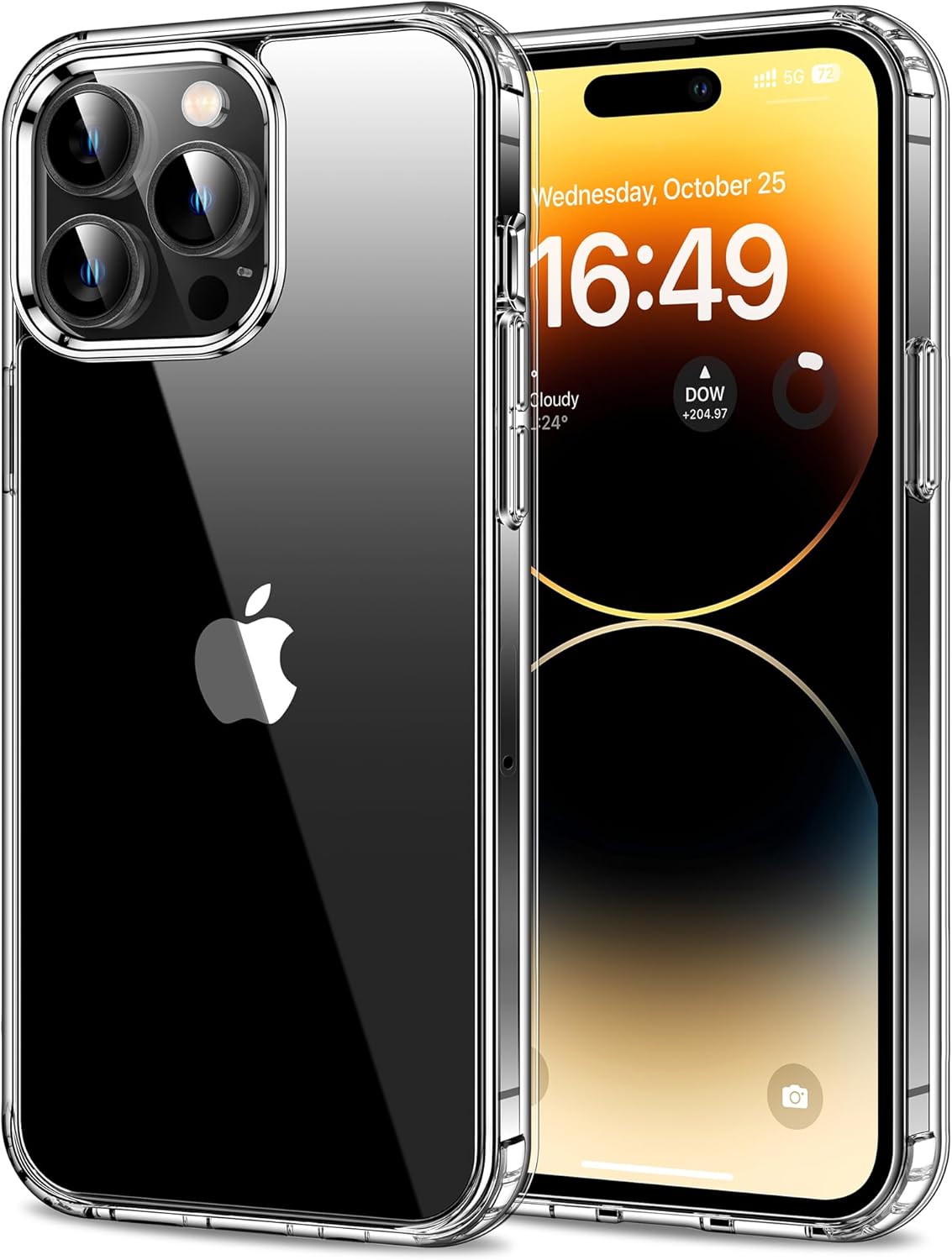HOOMIL Кристално прозрачен калъф за iPhone 14 Pro Max, никога не пожълтява, удароустойчив във военен стил, прозрачен защитен калъф за гръб
