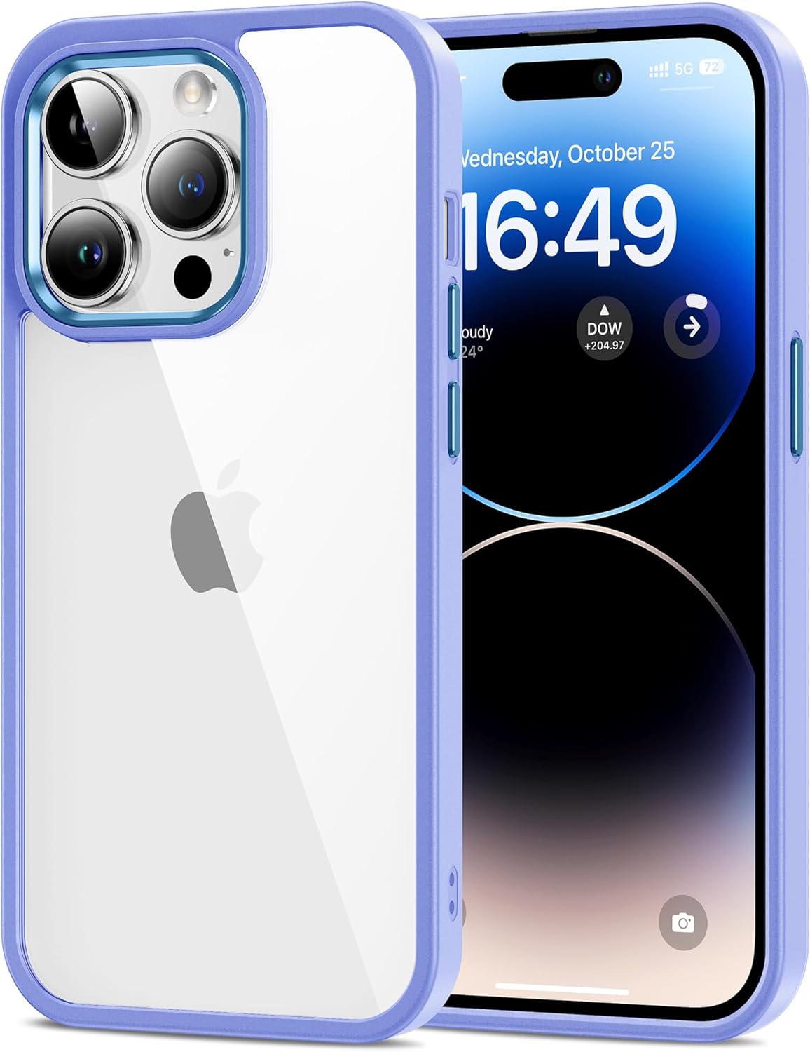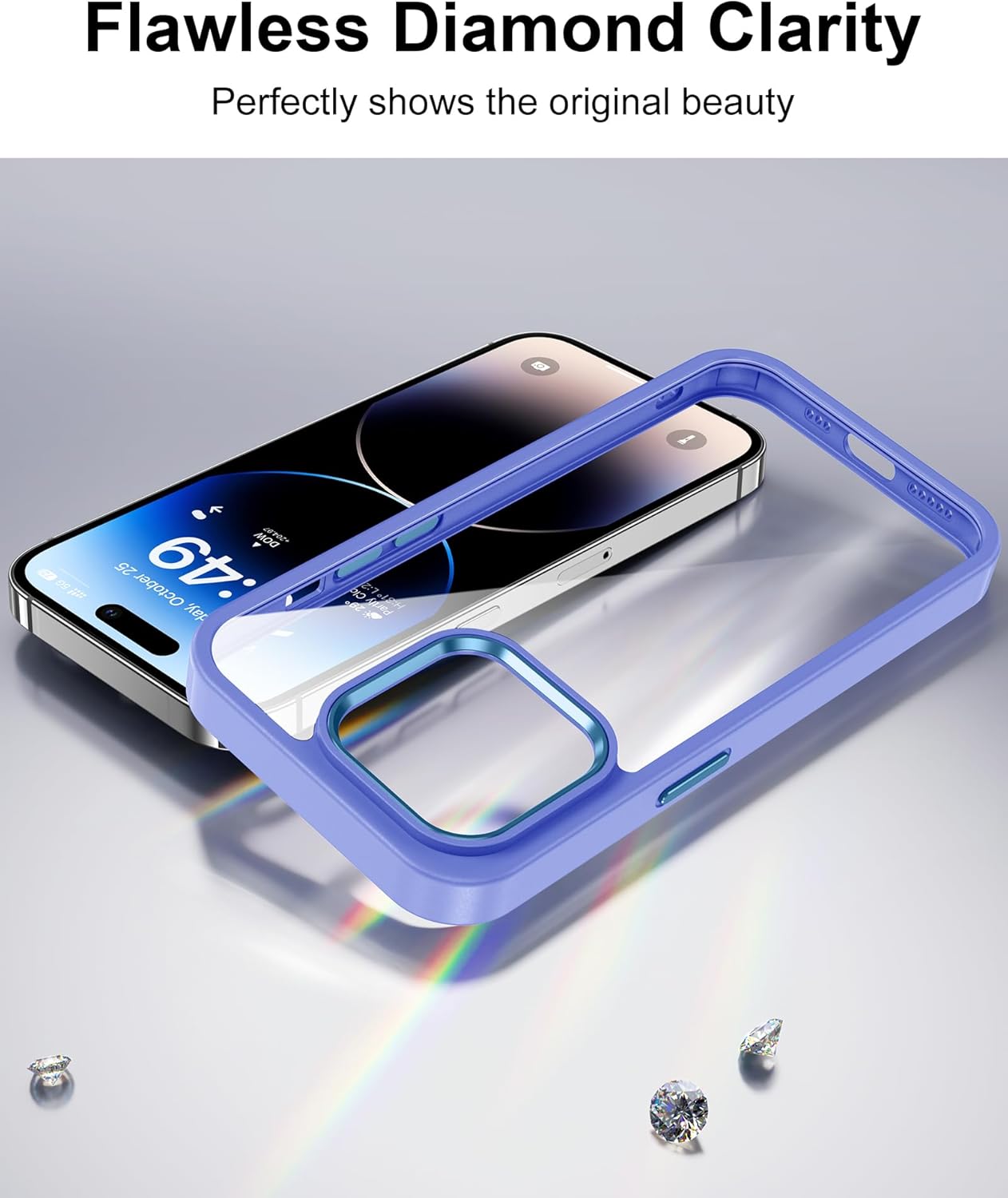 HOOMIL Кристално прозрачен калъф за iPhone 14 Pro, никога не пожълтява, удароустойчив във военна среда, прозрачен защитен калъф за гръб - лилав