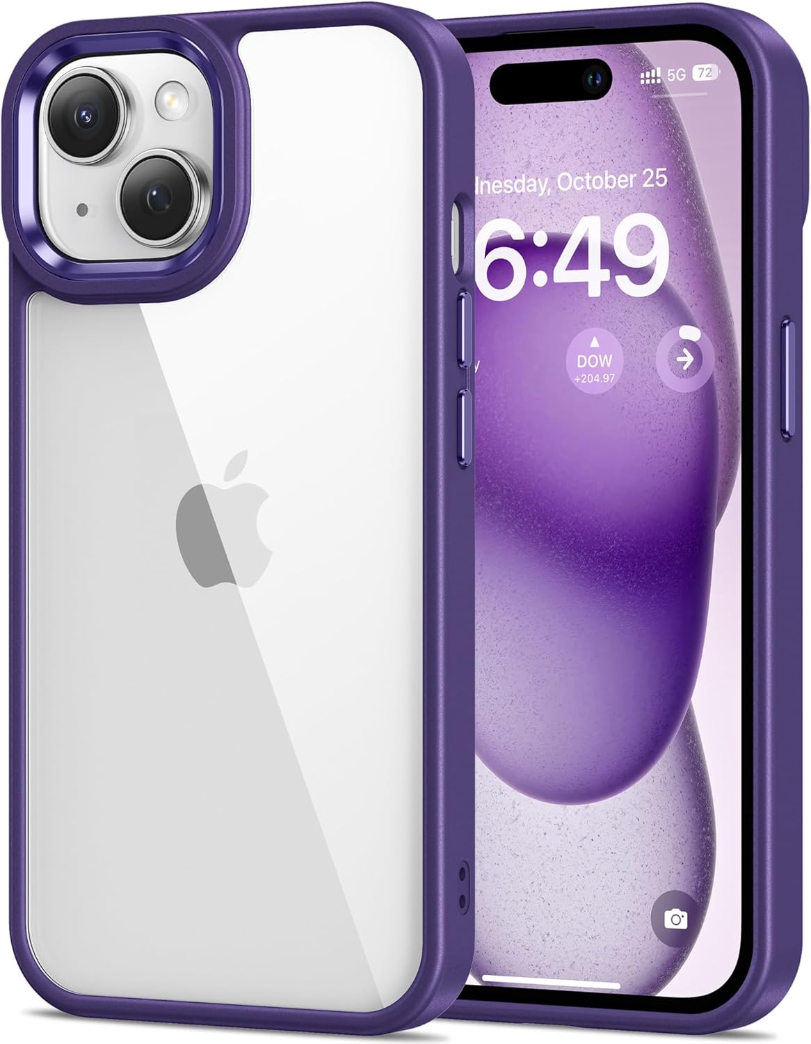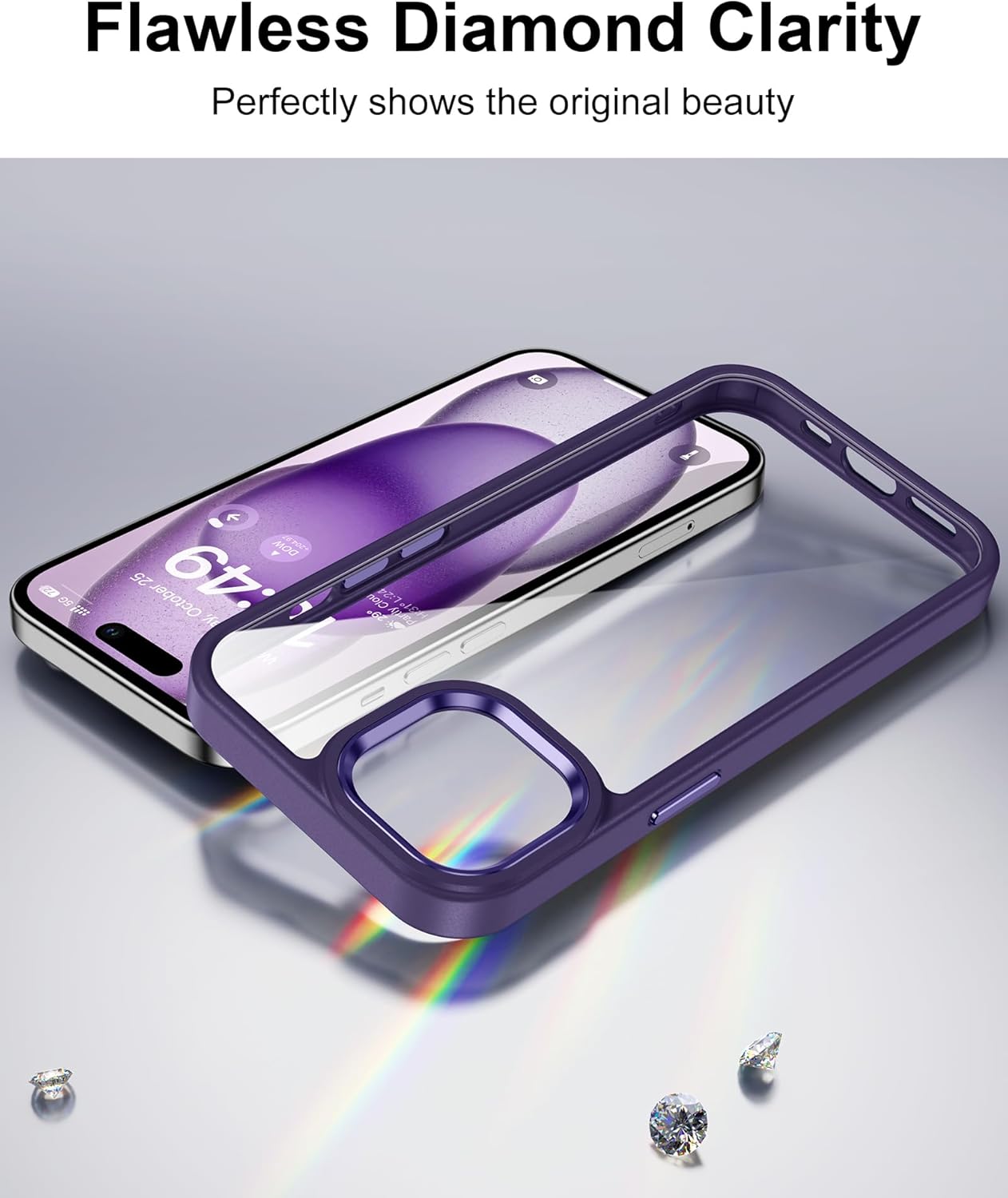 HOOMIL Кристално прозрачен калъф за iPhone 15, [Анти жълт] [Военен удароустойчив] Калъф за мобилен телефон, прозрачен, твърд, защитен гръб - тъмно лилав
