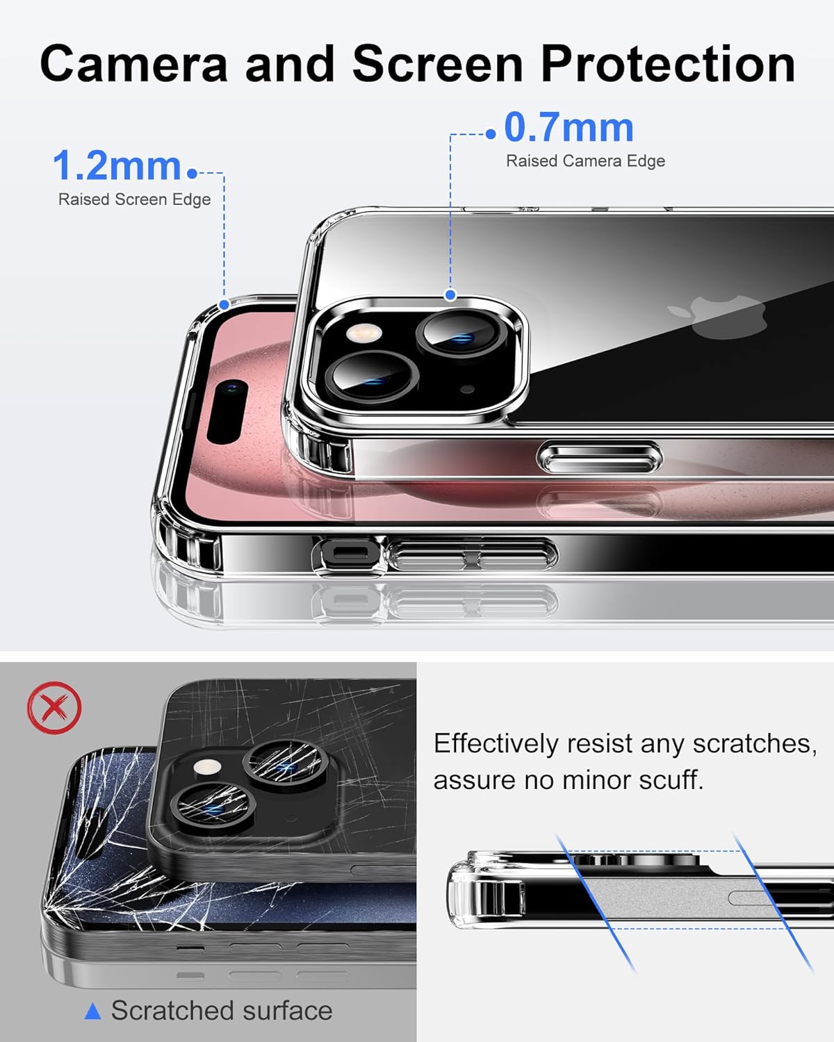 • Стандартна военна защита: уникален удароустойчив дизайн; 4-те ъгъла ефективно абсорбират ударите, а повдигнатите ръбове напълно предпазват екрана и камерата от падане върху плоски повърхности.