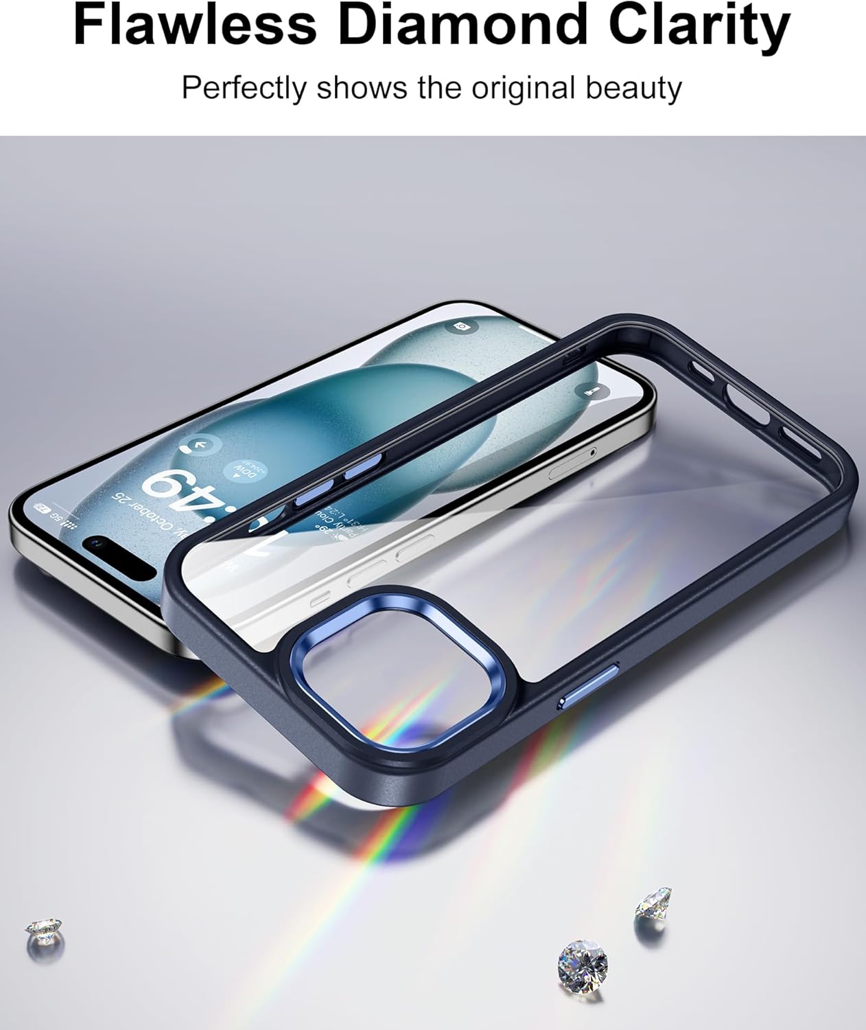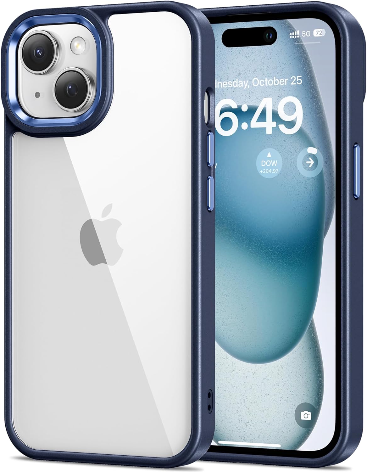 HOOMIL Кристално прозрачен калъф за iPhone 15 Plus, [Анти жълт] [Военен удароустойчив] Калъф за мобилен телефон, прозрачен, твърд, защитен калъф с гръб - син