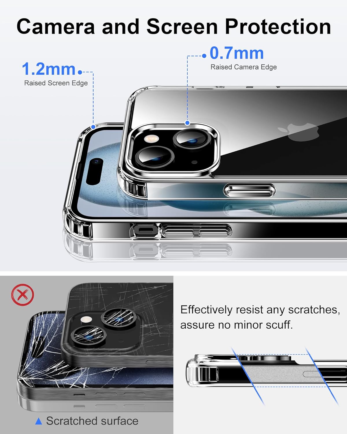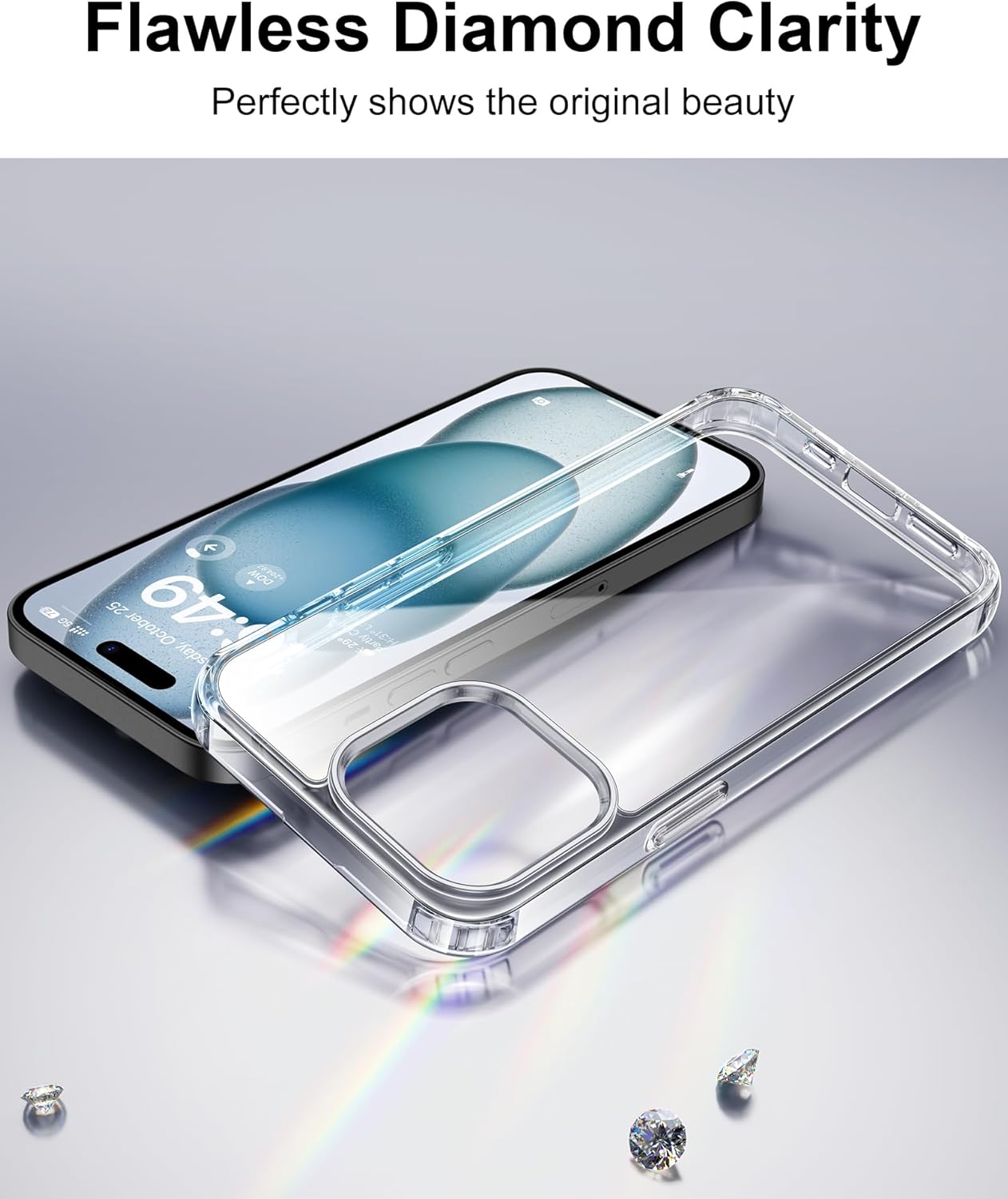 HOOMIL Кристално прозрачен калъф за iPhone 15 Plus, [Анти жълт] [Военен удароустойчив] Калъф за мобилен телефон, прозрачен, твърд, защитен калъф за гръб - прозрачен