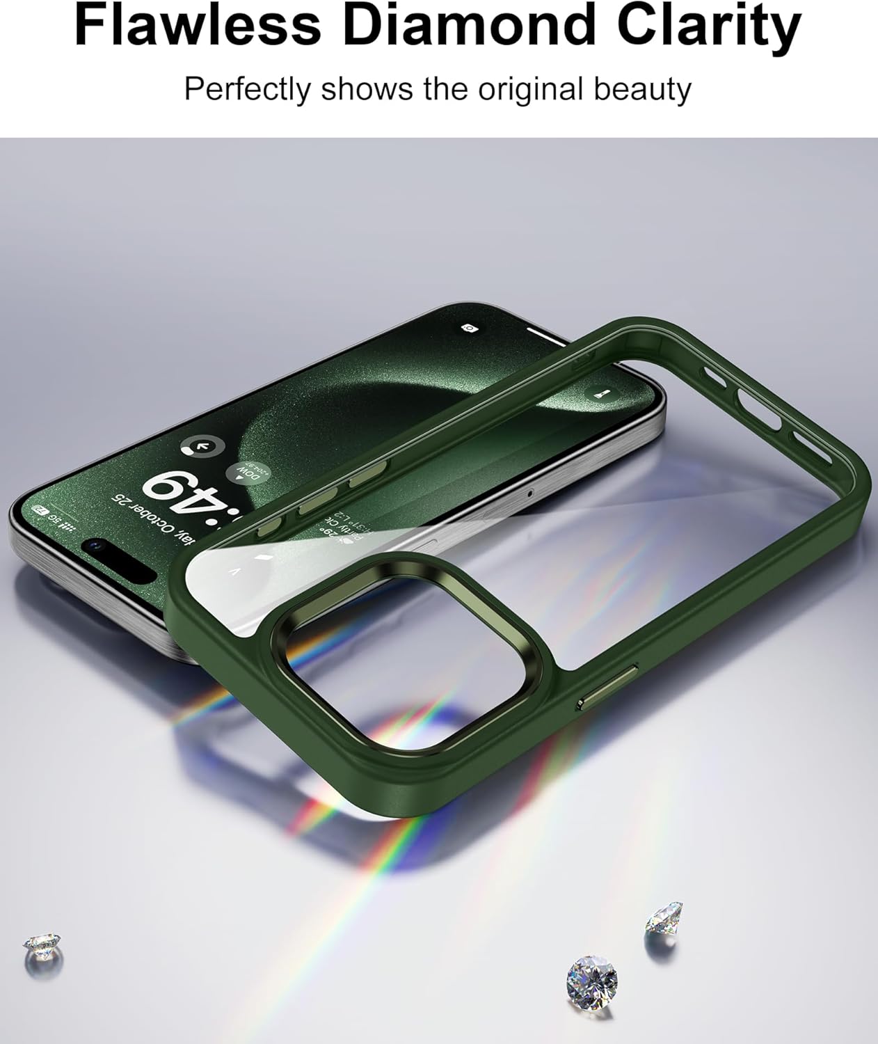 HOOMIL Кристално прозрачен калъф за iPhone 15 Pro, [Анти жълт] [Военен удароустойчив] Калъф за мобилен телефон, прозрачен, твърд, защитен калъф за гръб - зелен