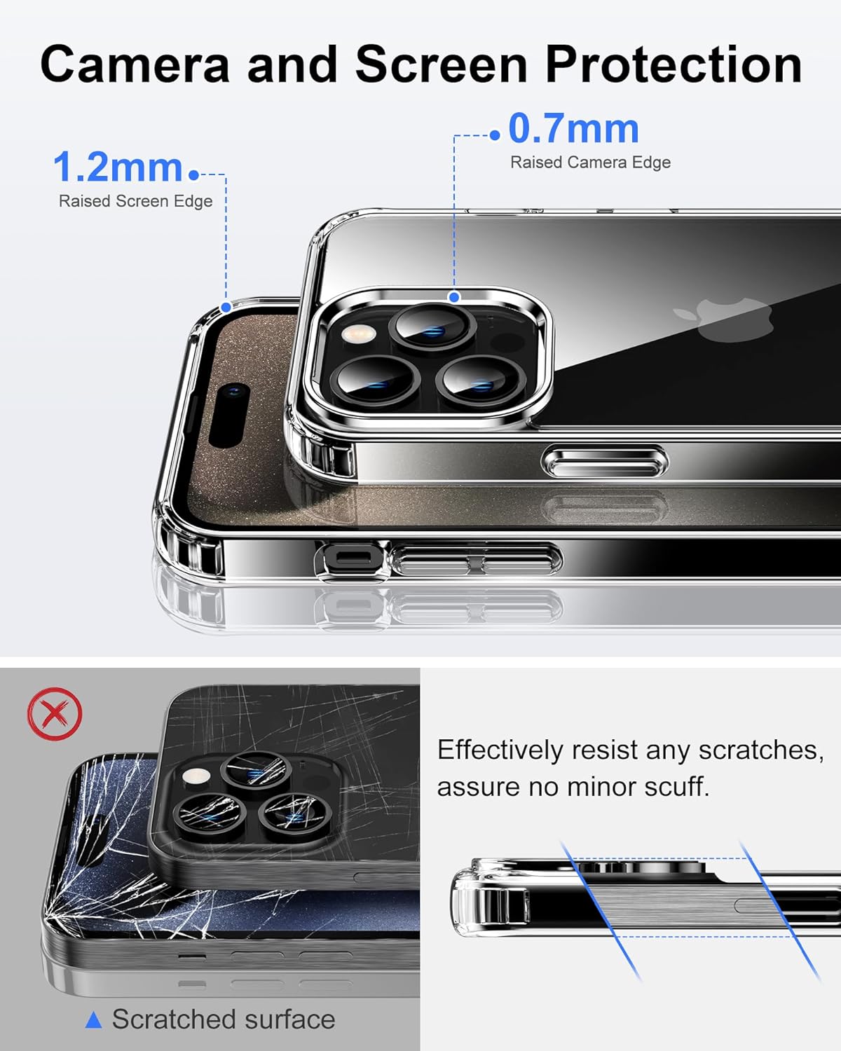 • Стандартна военна защита: уникален удароустойчив дизайн; 4-те ъгъла ефективно абсорбират ударите, а повдигнатите ръбове напълно предпазват екрана и камерата от падане върху плоски повърхности.