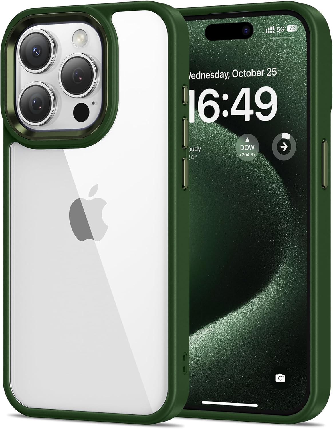 HOOMIL Кристално прозрачен калъф за iPhone 15 Pro Max, [Анти жълт] [Военен удароустойчив] Калъф за мобилен телефон, прозрачен, твърд, защитен гръб - зелен