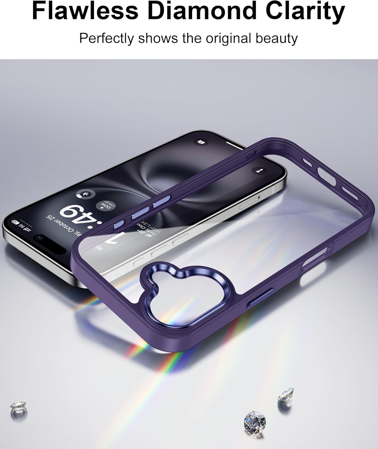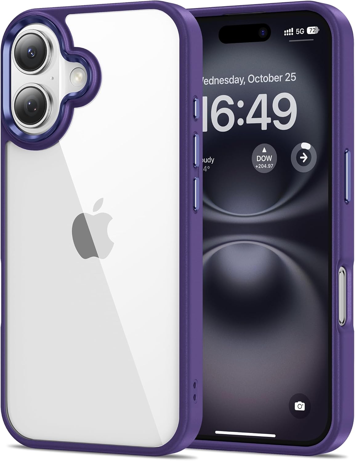 HOOMIL Кристално прозрачен калъф за iPhone 16, антижълт прозрачен калъф за мобилен телефон, удароустойчив защитен калъф - лилав