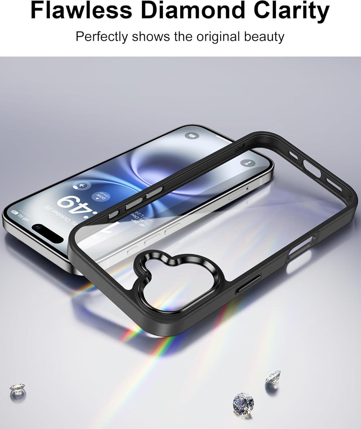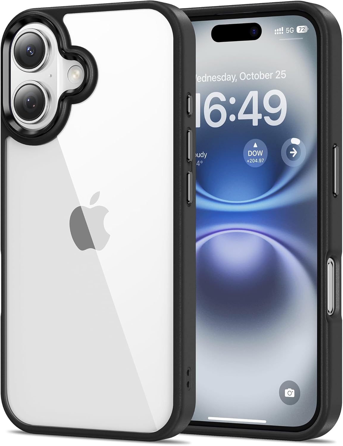 HOOMIL Кристално прозрачен калъф за iPhone 16 Plus, антижълт прозрачен калъф за мобилен телефон, удароустойчив защитен калъф - черен