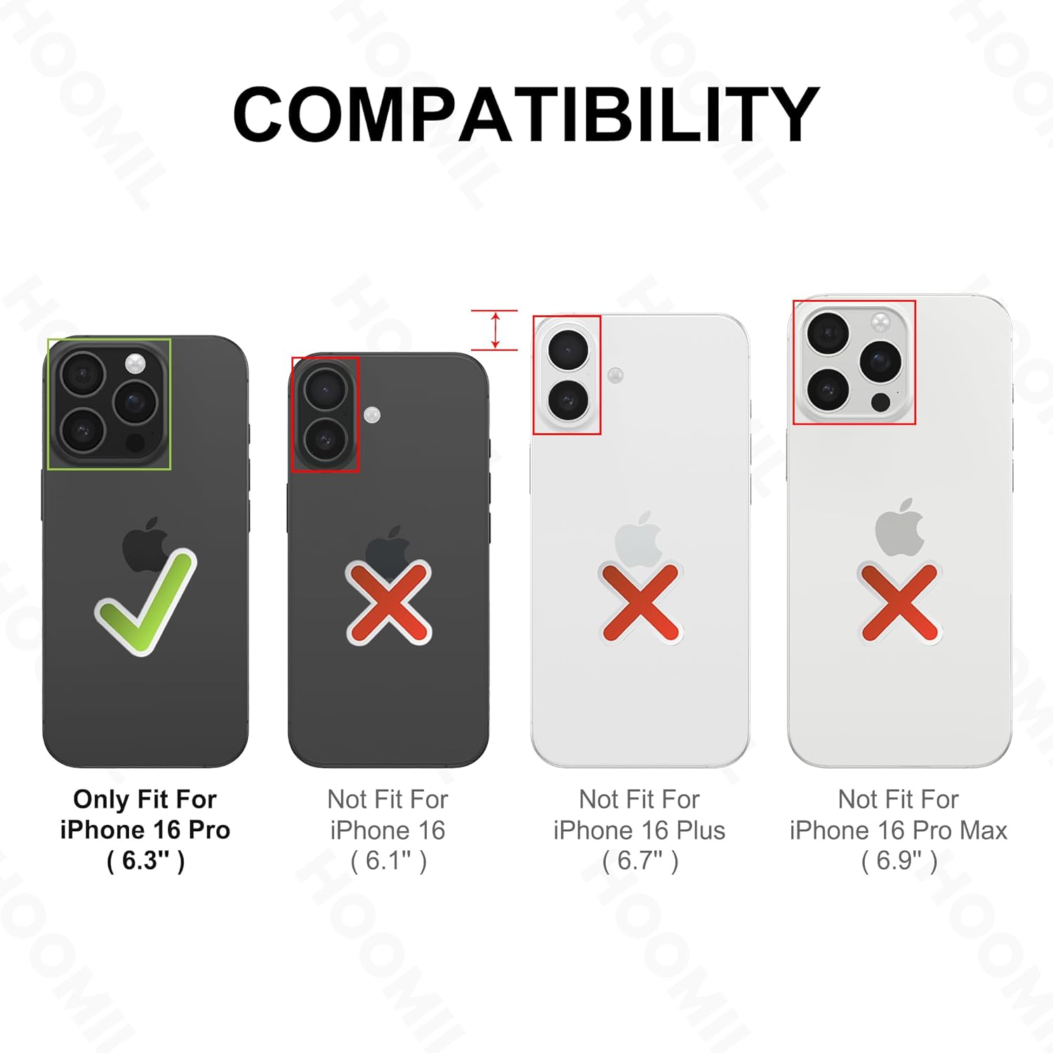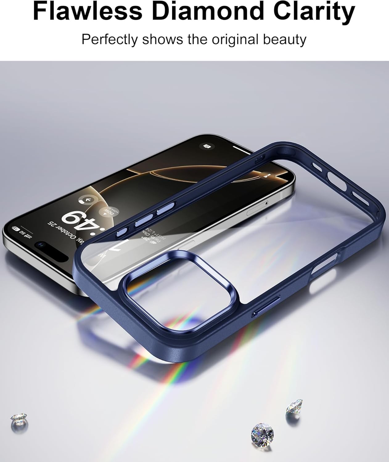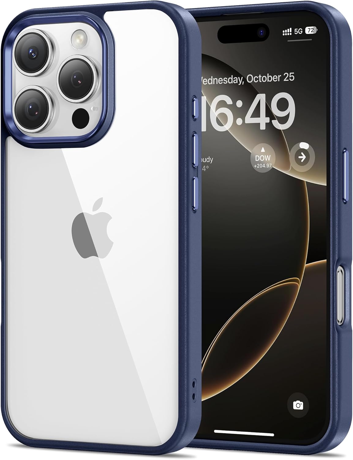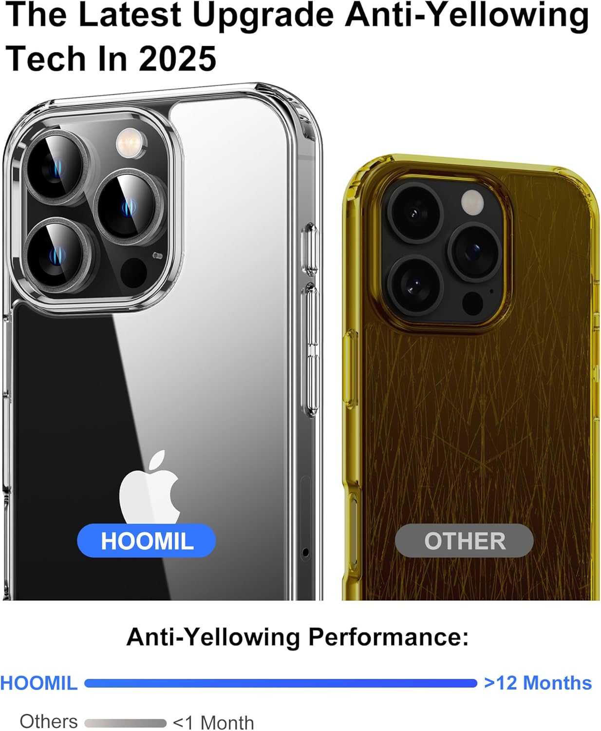 HOOMIL Кристално прозрачен калъф за iPhone 16 Pro, антижълт прозрачен калъф за мобилен телефон, удароустойчив защитен калъф - син