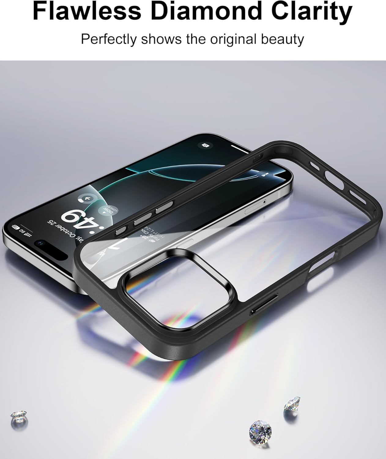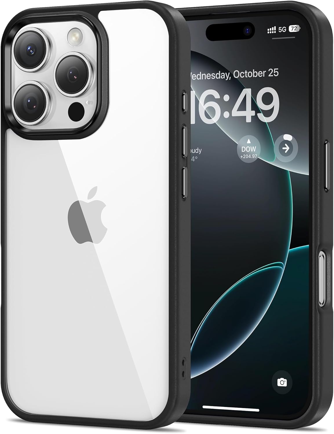 HOOMIL Кристално прозрачен калъф за iPhone 16 Pro Max, антижълт прозрачен калъф за мобилен телефон, удароустойчив защитен калъф - черен