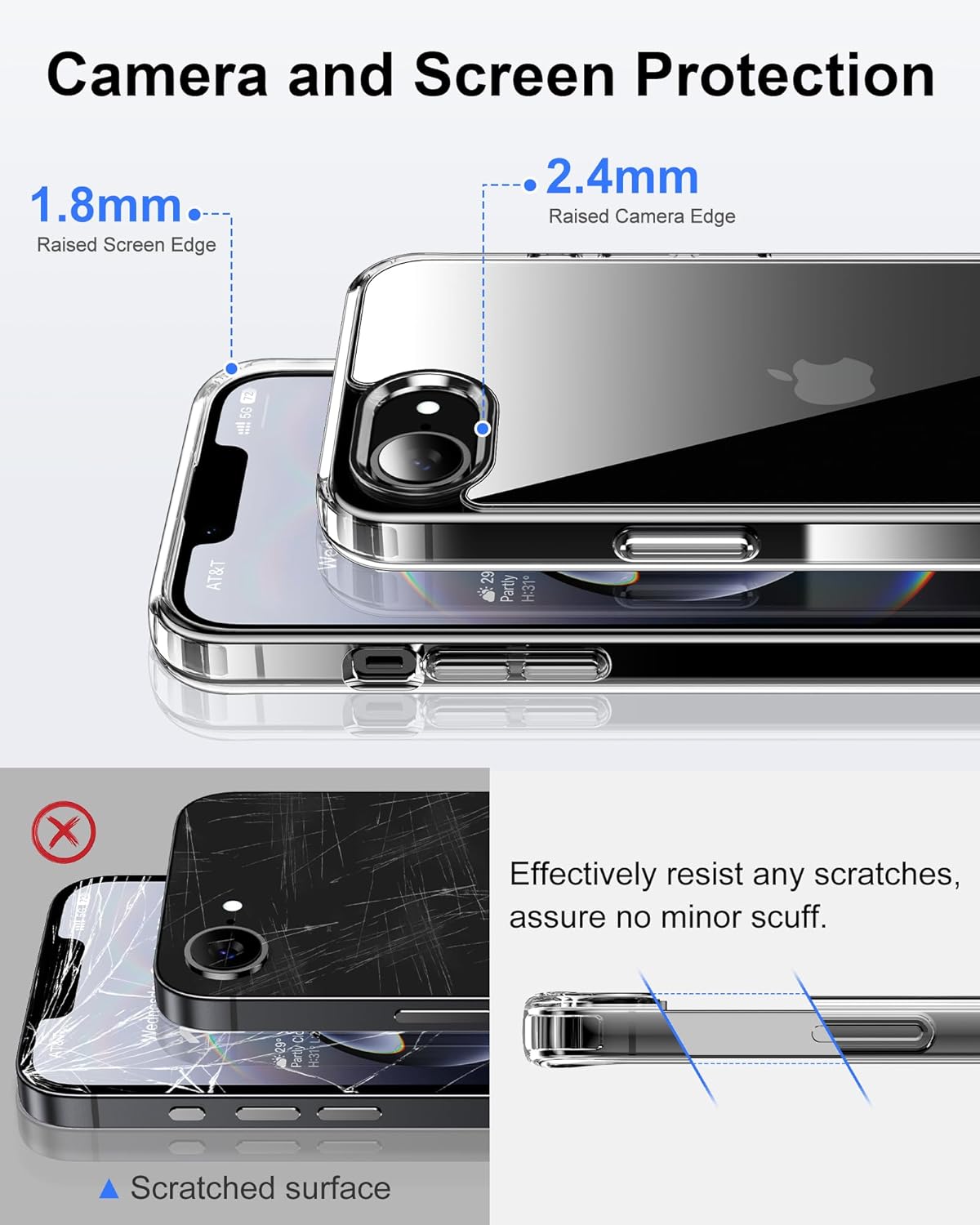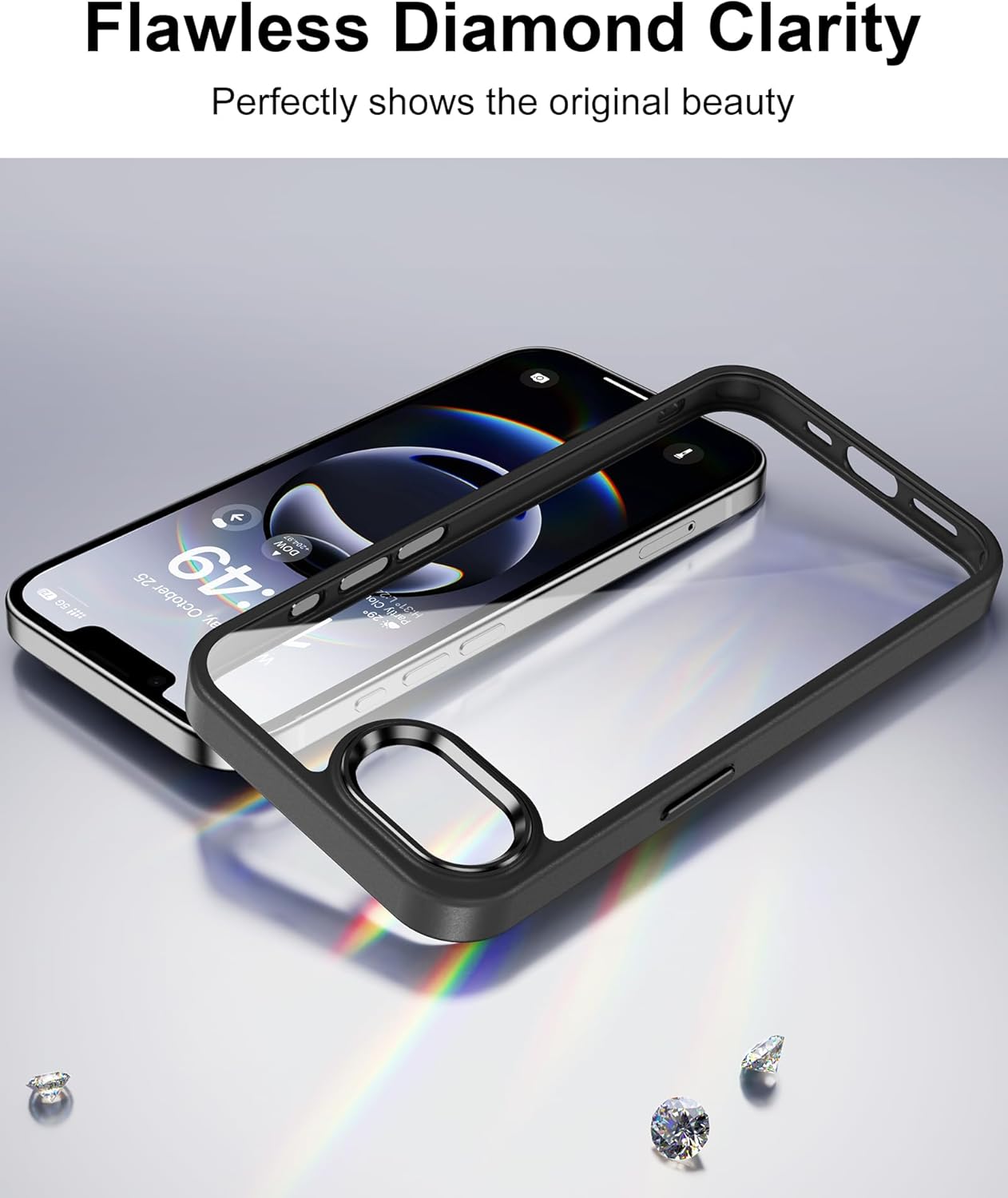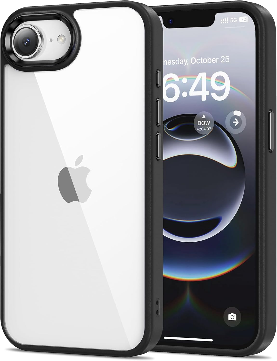 HOOMIL Кристално прозрачен калъф за iPhone 16e, антижълт прозрачен калъф за мобилен телефон, удароустойчив защитен калъф - черен