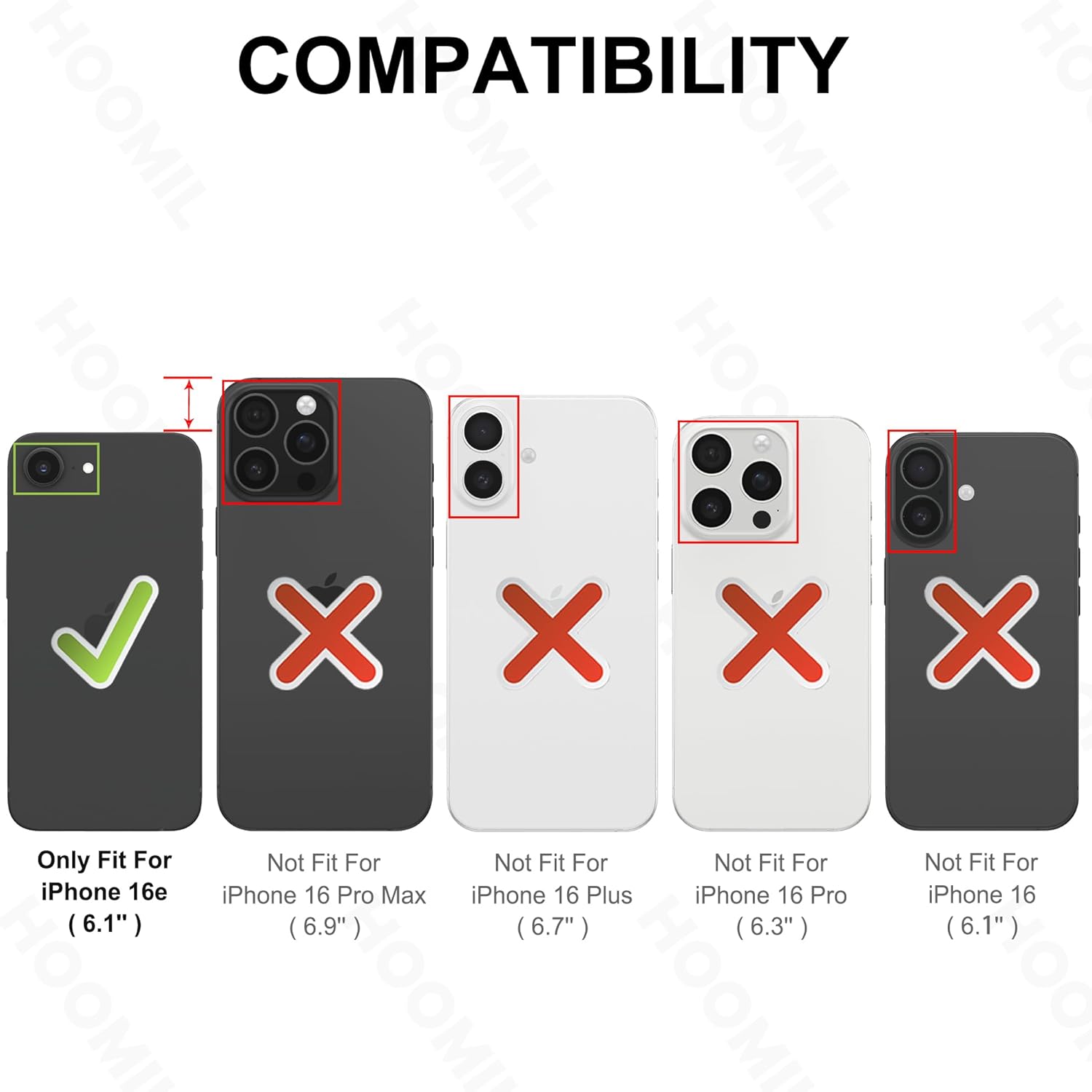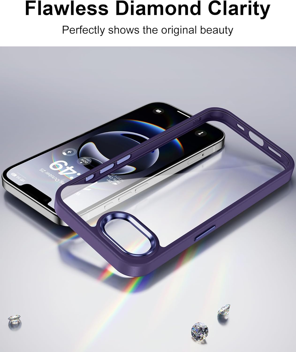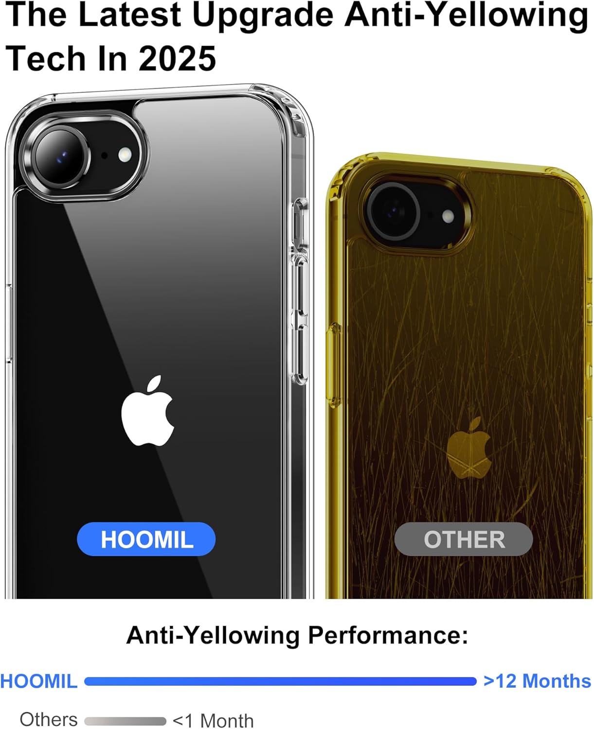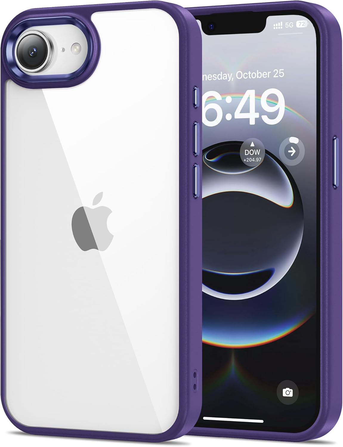 HOOMIL Кристално прозрачен калъф за iPhone 16e, антижълт прозрачен калъф за мобилен телефон, удароустойчив защитен калъф - лилав