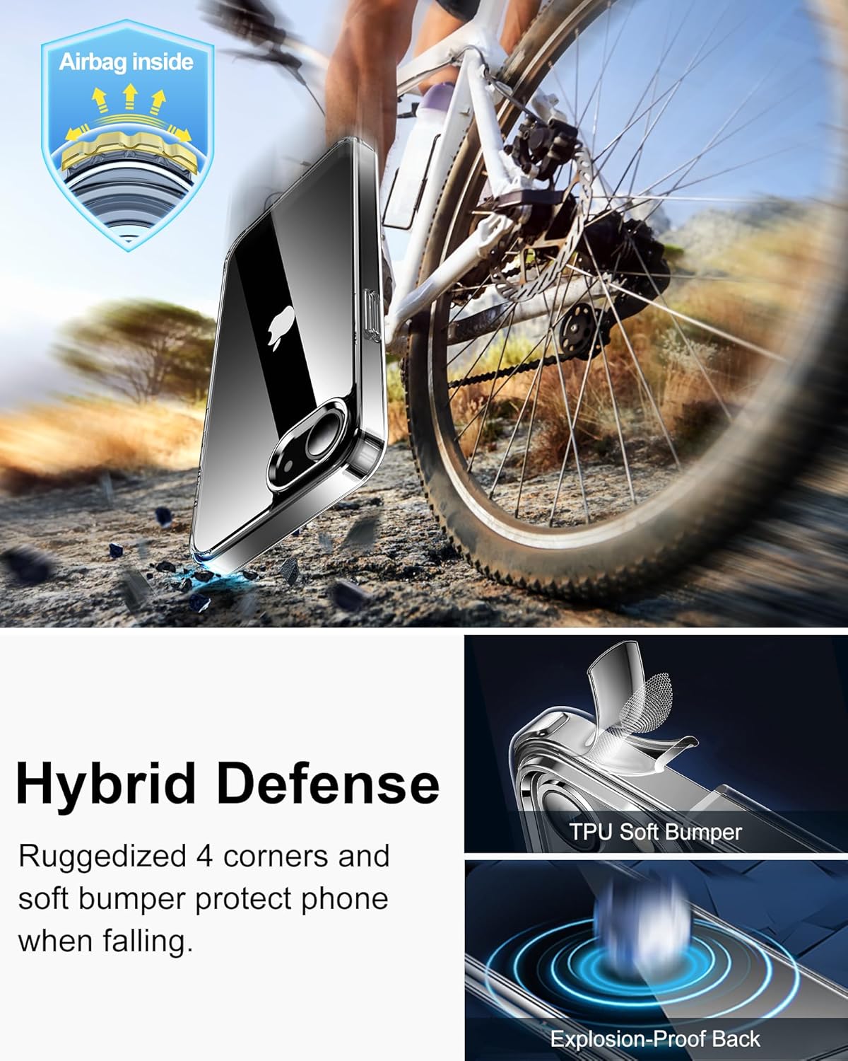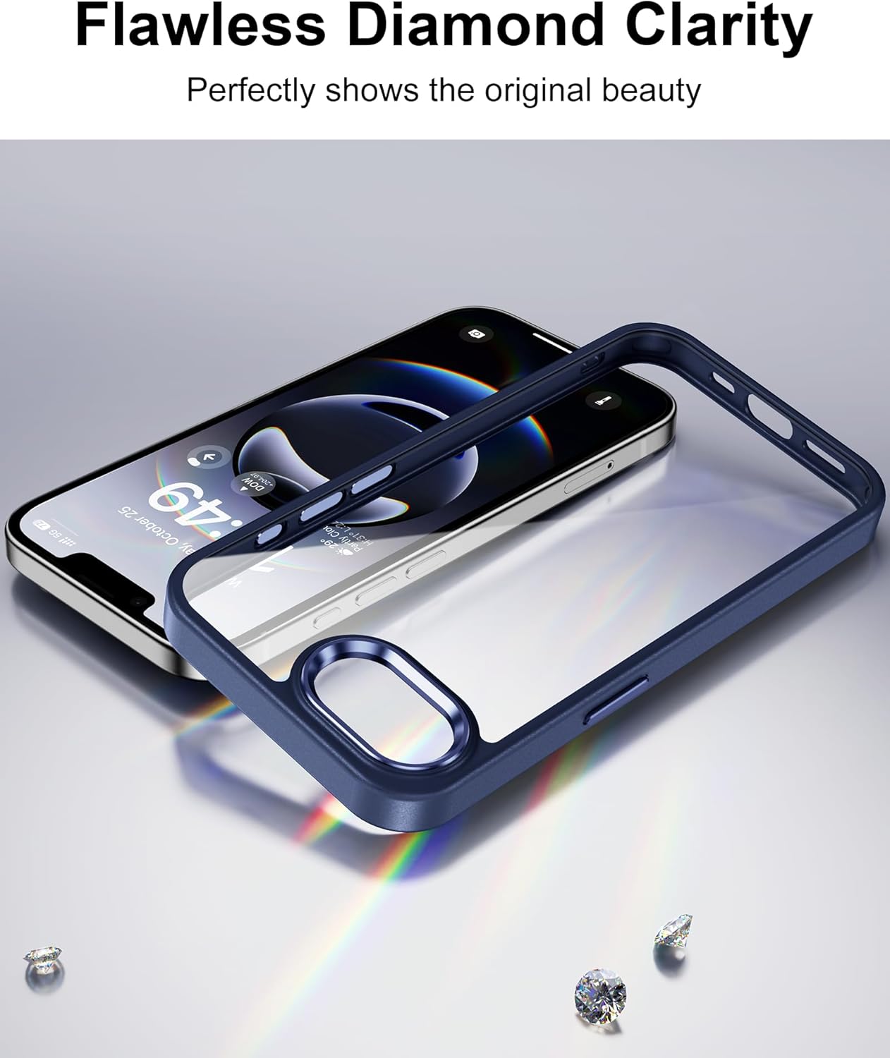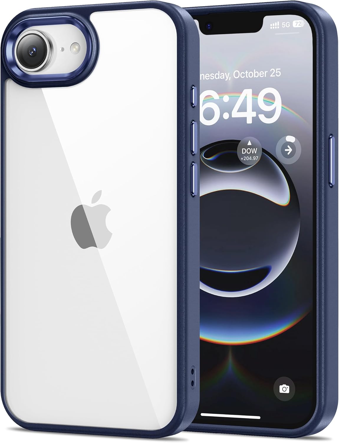 HOOMIL Кристално прозрачен калъф за iPhone 16e, антижълт прозрачен калъф за мобилен телефон, удароустойчив защитен калъф - син