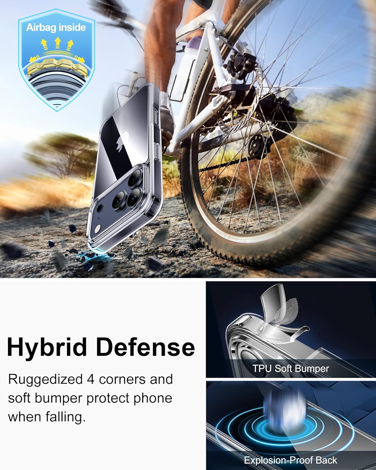 HOOMIL Кристално прозрачен калъф за iPhone 17 Pro, антижълт прозрачен калъф за мобилен телефон, удароустойчив защитен калъф - прозрачен