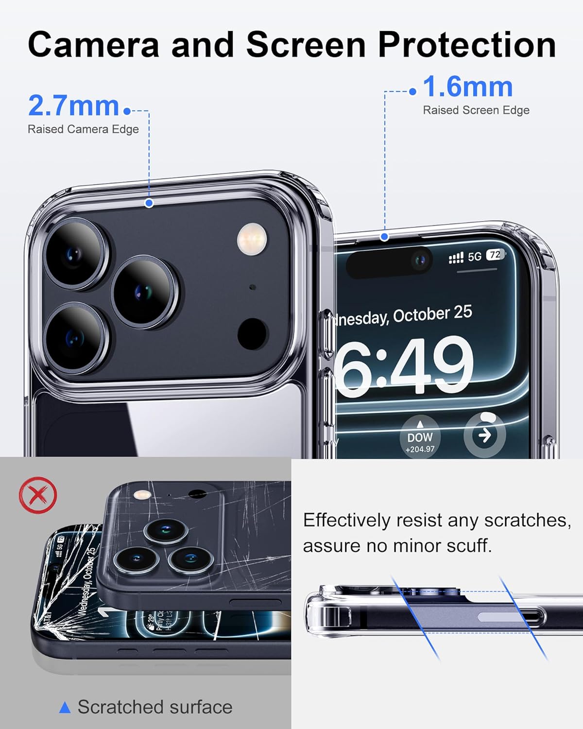 • Стандартна военна защита: уникален удароустойчив дизайн; 4-те ъгъла ефективно абсорбират ударите, а повдигнатите ръбове напълно предпазват екрана и камерата от падане върху плоски повърхности.