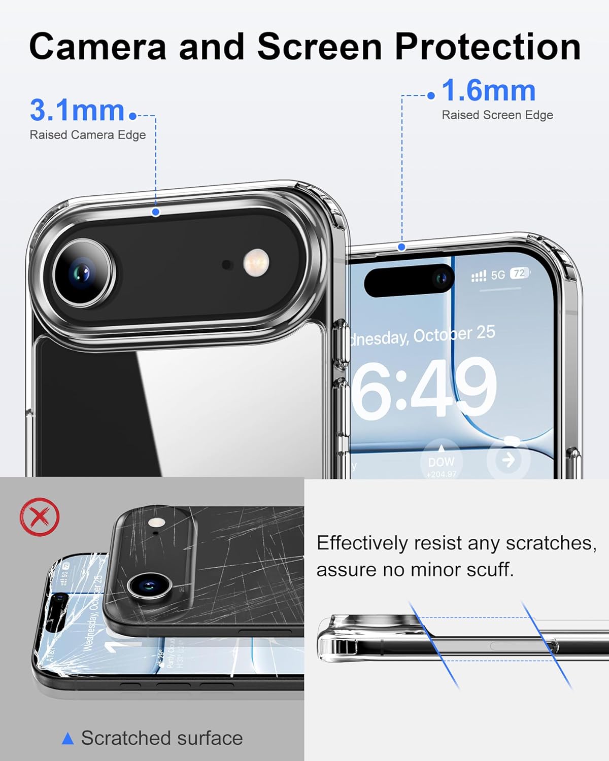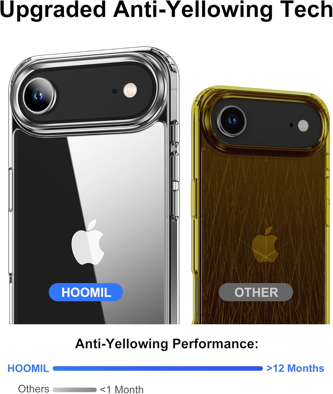 HOOMIL Кристално прозрачен калъф за iPhone Air, антижълт прозрачен калъф за мобилен телефон, удароустойчив защитен калъф - прозрачен