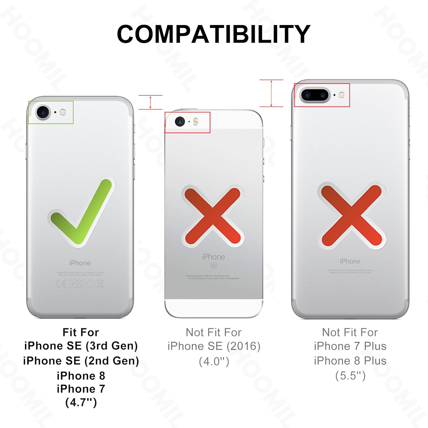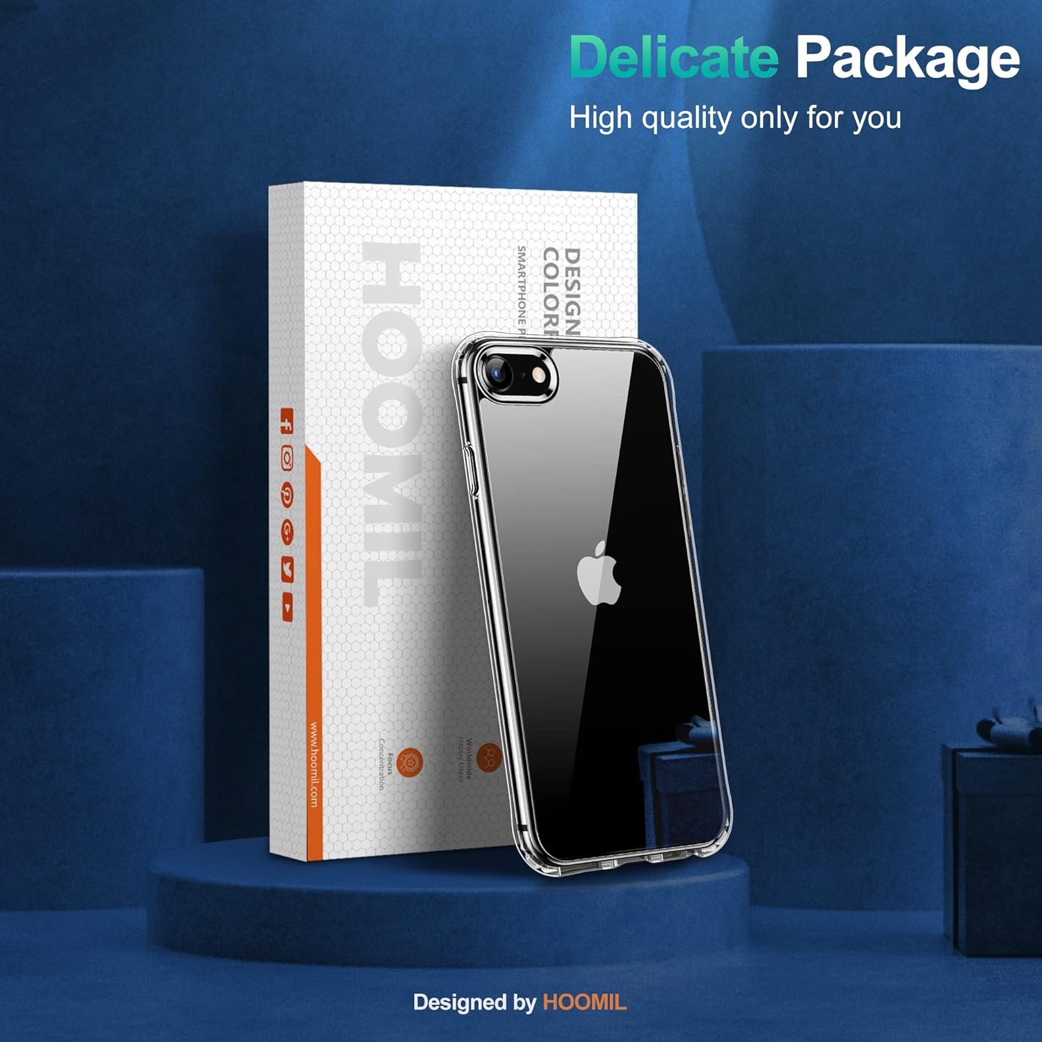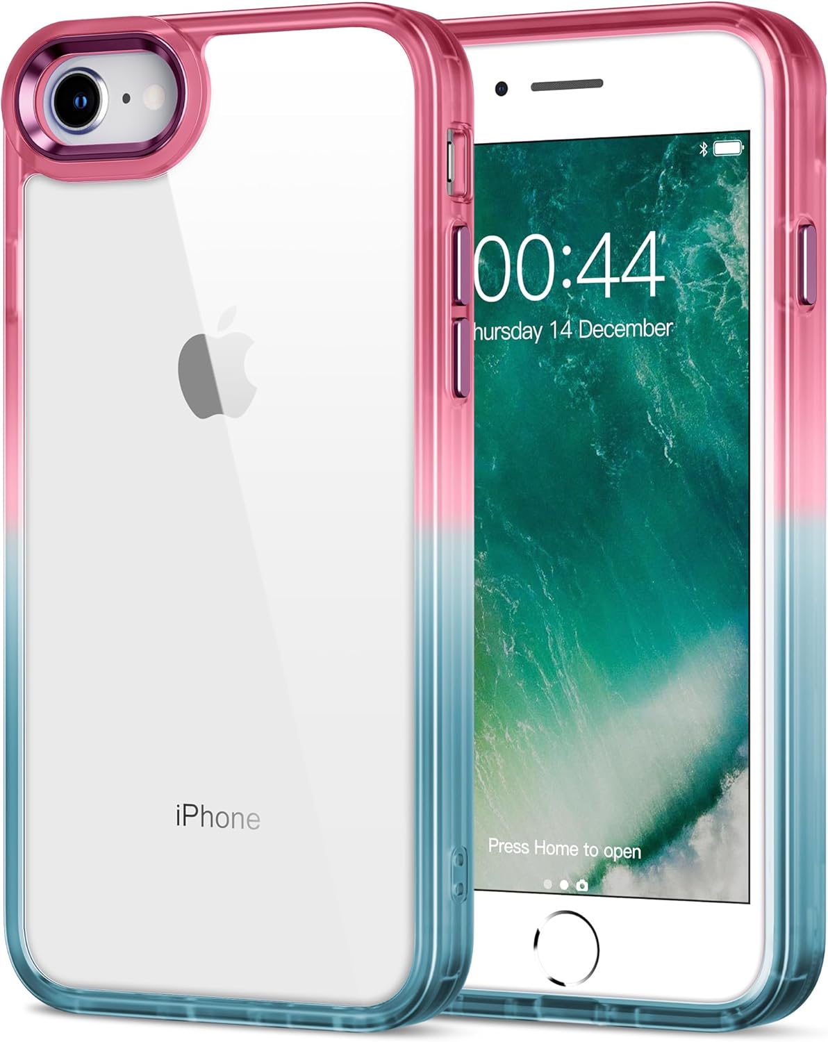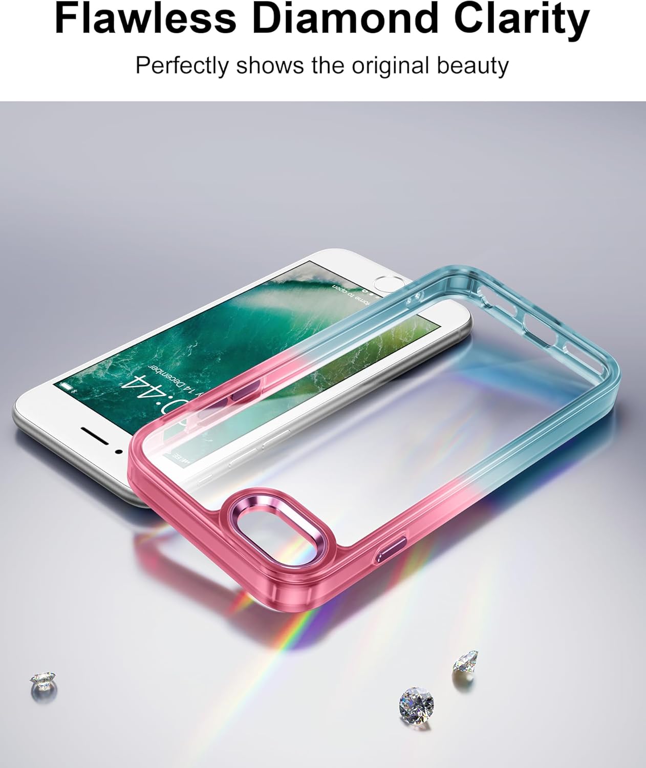 HOOMIL Кристално прозрачен калъф за iPhone SE 2022 (3-то поколение)/iPhone SE 2020 (2-ро поколение)/iPhone 8/iPhone 7, антижълт прозрачен калъф за мобилен телефон, удароустойчив защитен калъф - розово червено + синьо