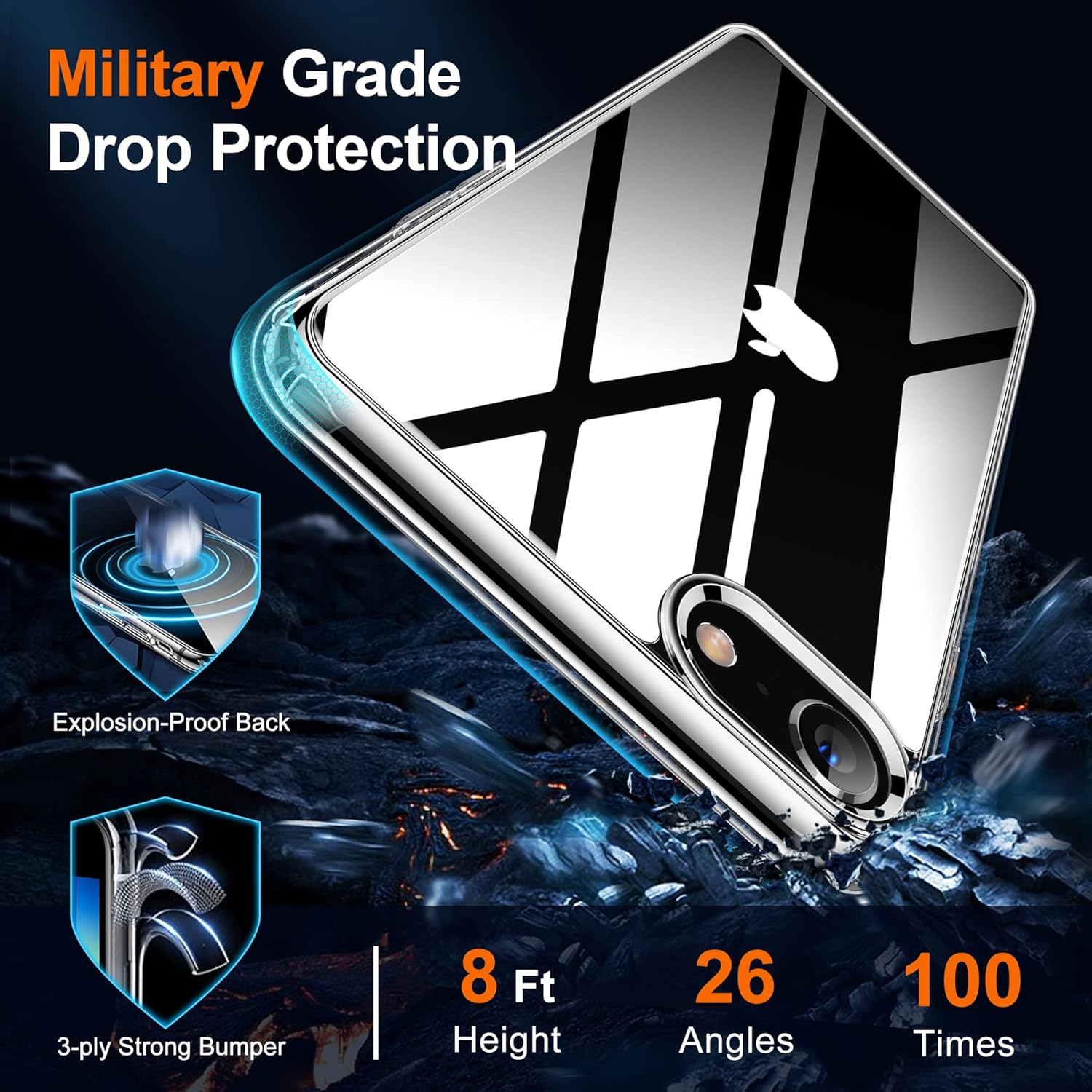 • Стандартна военна защита: уникален удароустойчив дизайн; 4-те ъгъла ефективно абсорбират ударите, а повдигнатите ръбове напълно предпазват екрана и камерата от падане върху плоски повърхности.