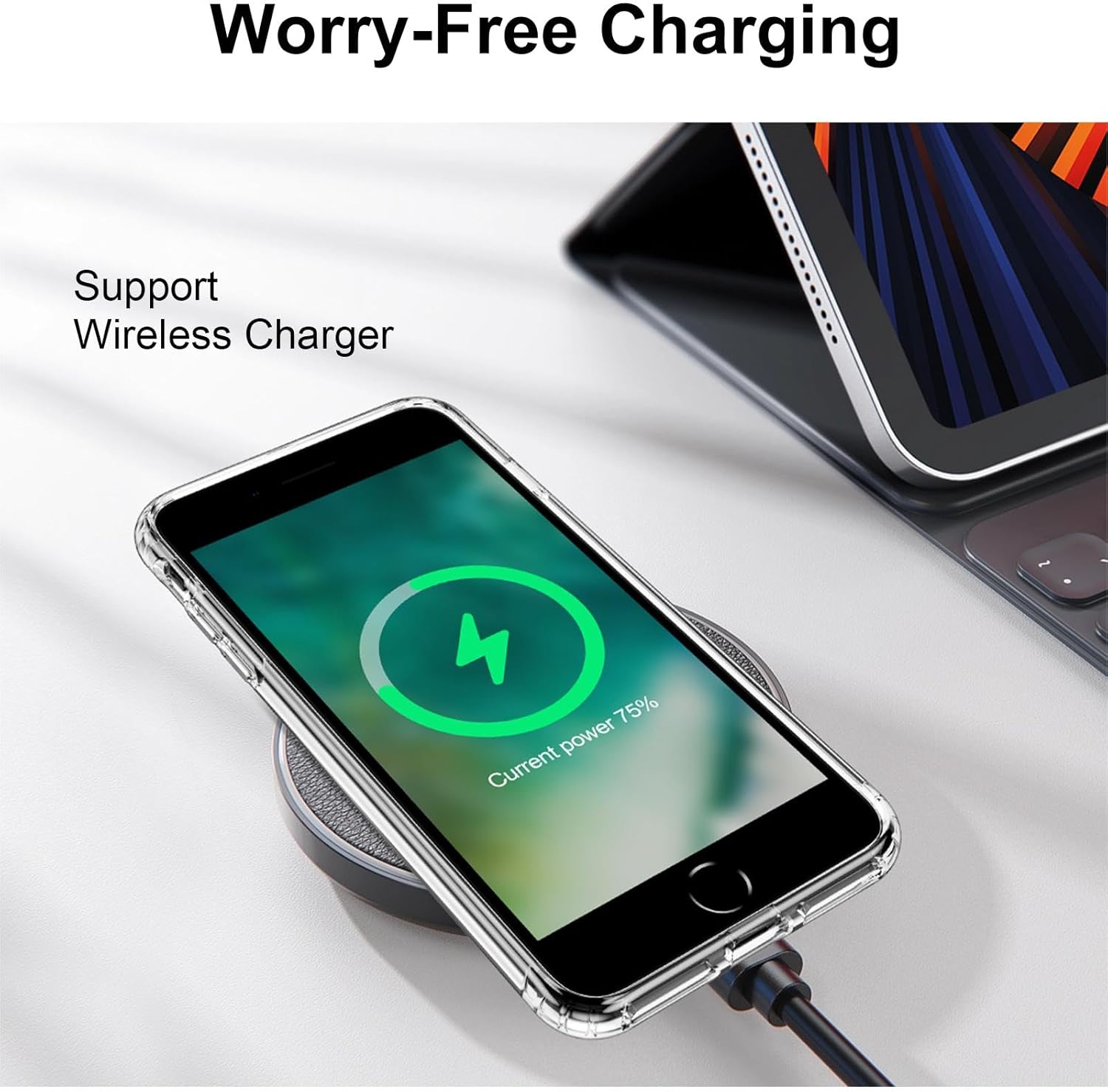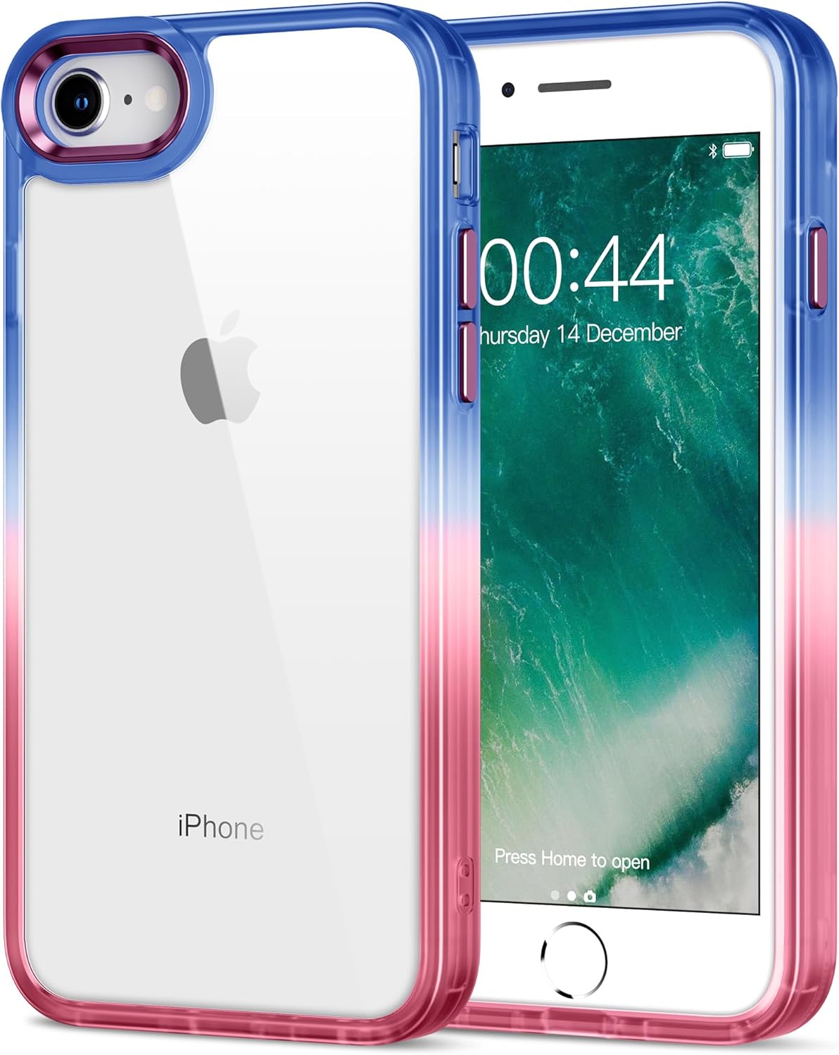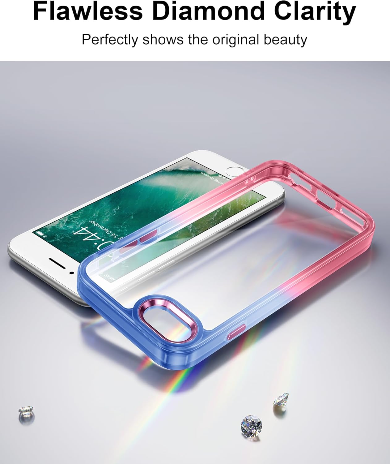 HOOMIL Кристално прозрачен калъф за iPhone SE 2022 (3-то поколение)/iPhone SE 2020 (2-ро поколение)/iPhone 8/iPhone 7, антижълт прозрачен калъф за мобилен телефон, удароустойчив защитен калъф - син + розовочервен