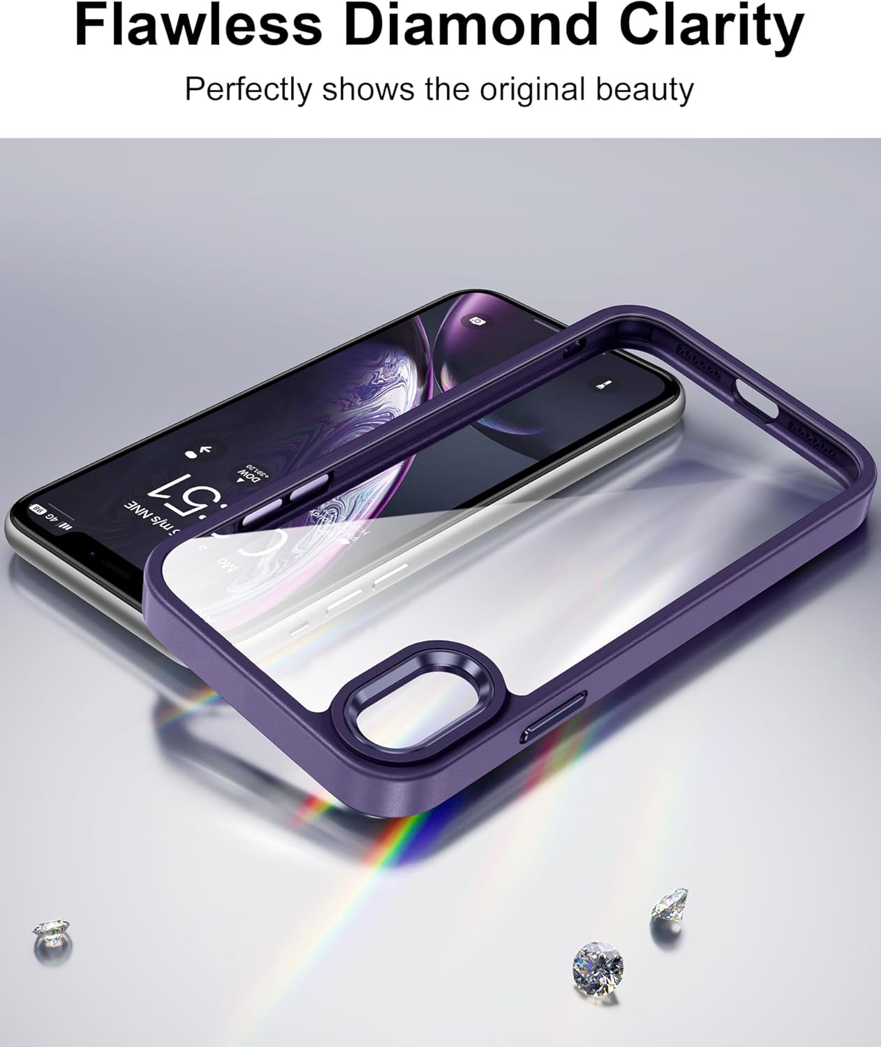 HOOMIL Кристално прозрачен калъф за iPhone XR, [Анти жълт] [Военен удароустойчив] Калъф за мобилен телефон, прозрачен, твърд, защитен гръб - лилав