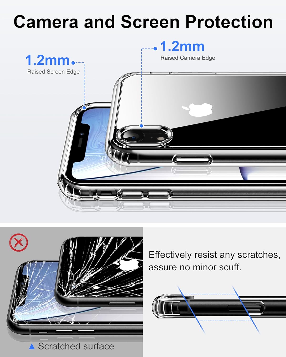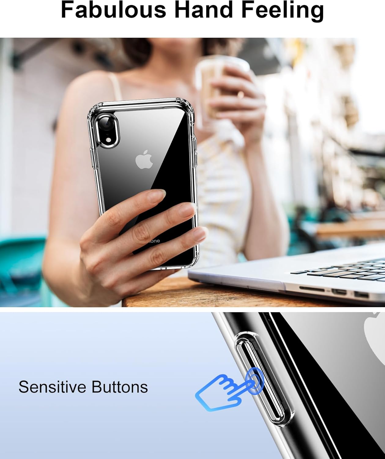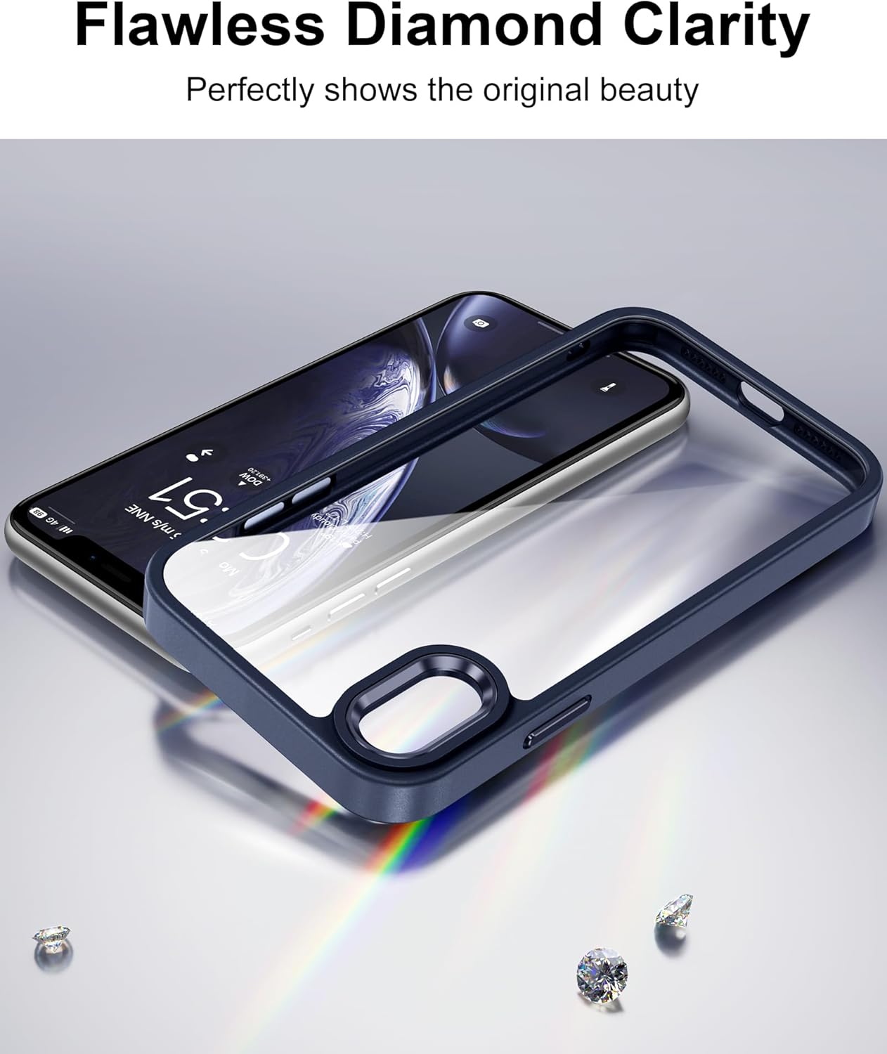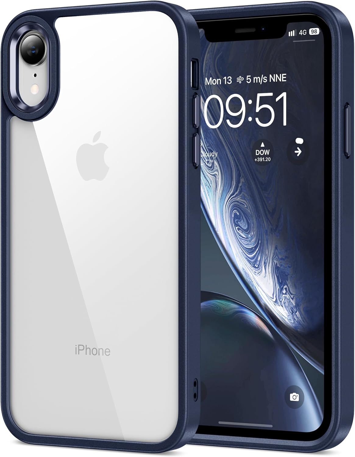 HOOMIL Кристално прозрачен калъф за iPhone XR, [Анти жълт] [Военен удароустойчив] Калъф за мобилен телефон, прозрачен, твърд, защитен калъф за гръб - син