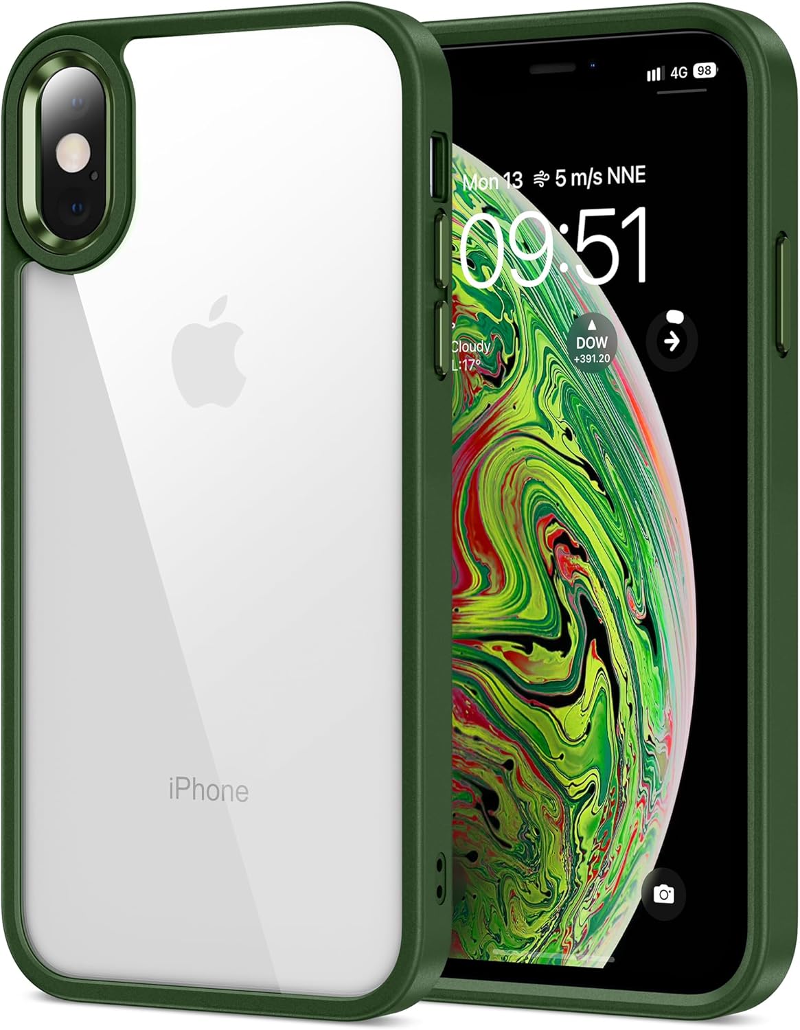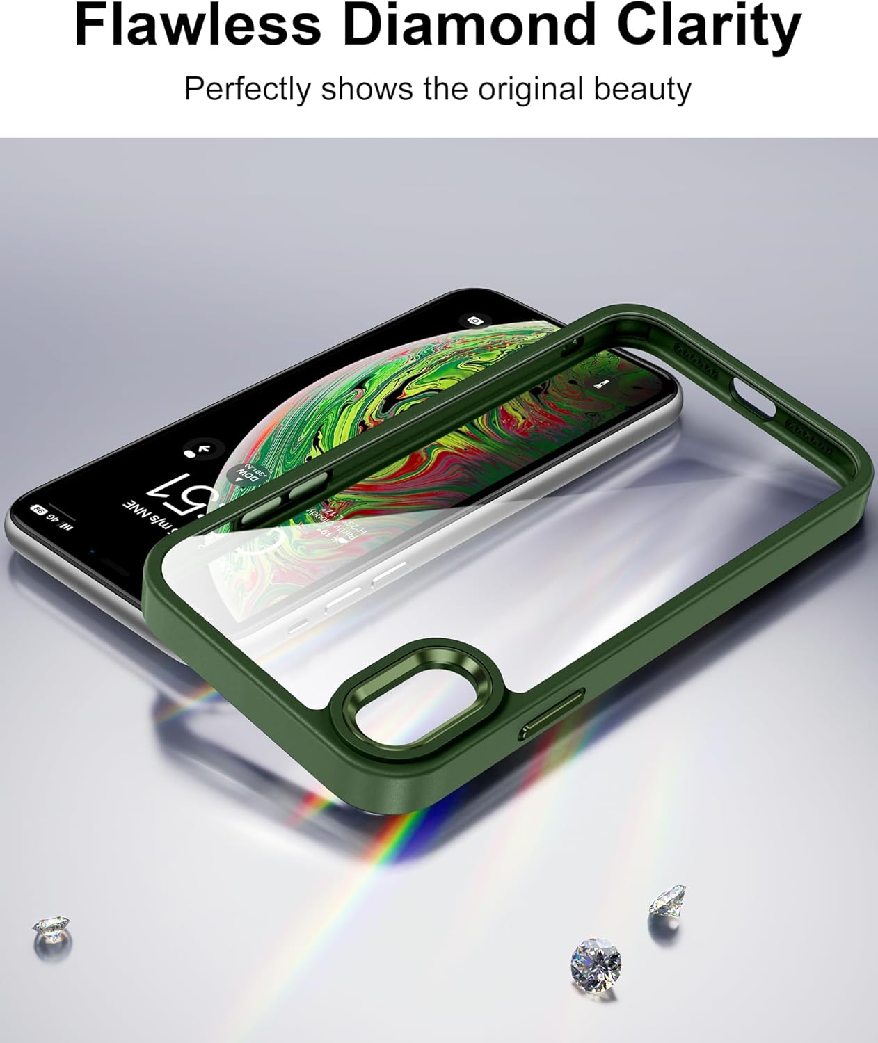 HOOMIL Кристално прозрачен калъф за iPhone XS Max, [Анти жълт] [Военен удароустойчив] Калъф за мобилен телефон, прозрачен, твърд, защитен гръб - зелен