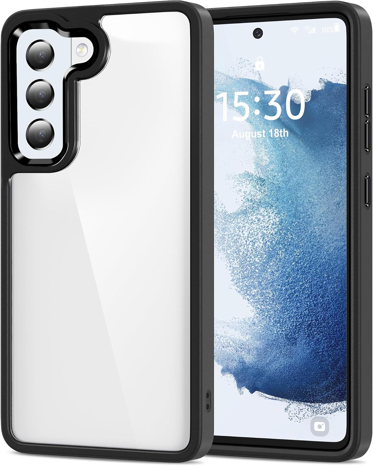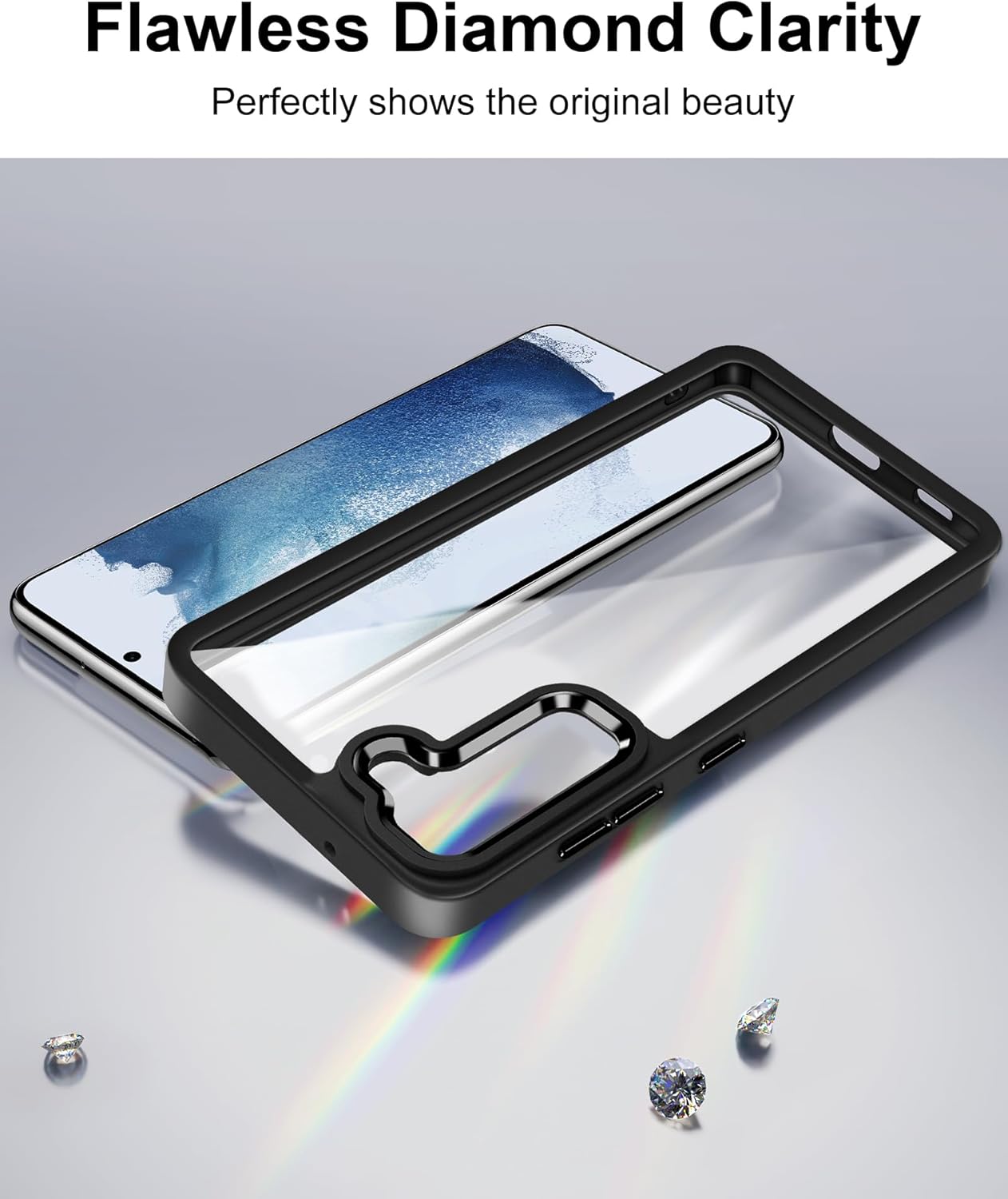 HOOMIL Кристално прозрачен калъф за Samsung Galaxy S22 5G, никога пожълтяващ прозрачен - черен