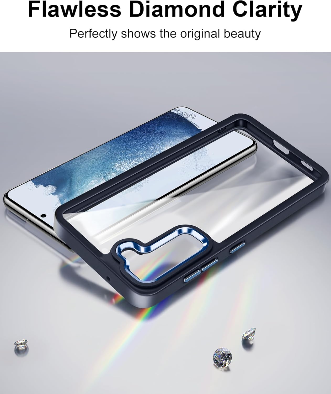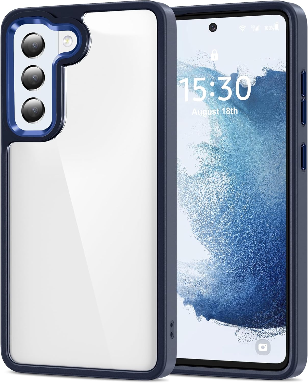 HOOMIL Кристално прозрачен калъф за Samsung Galaxy S22 5G, никога пожълтяващ прозрачен - син