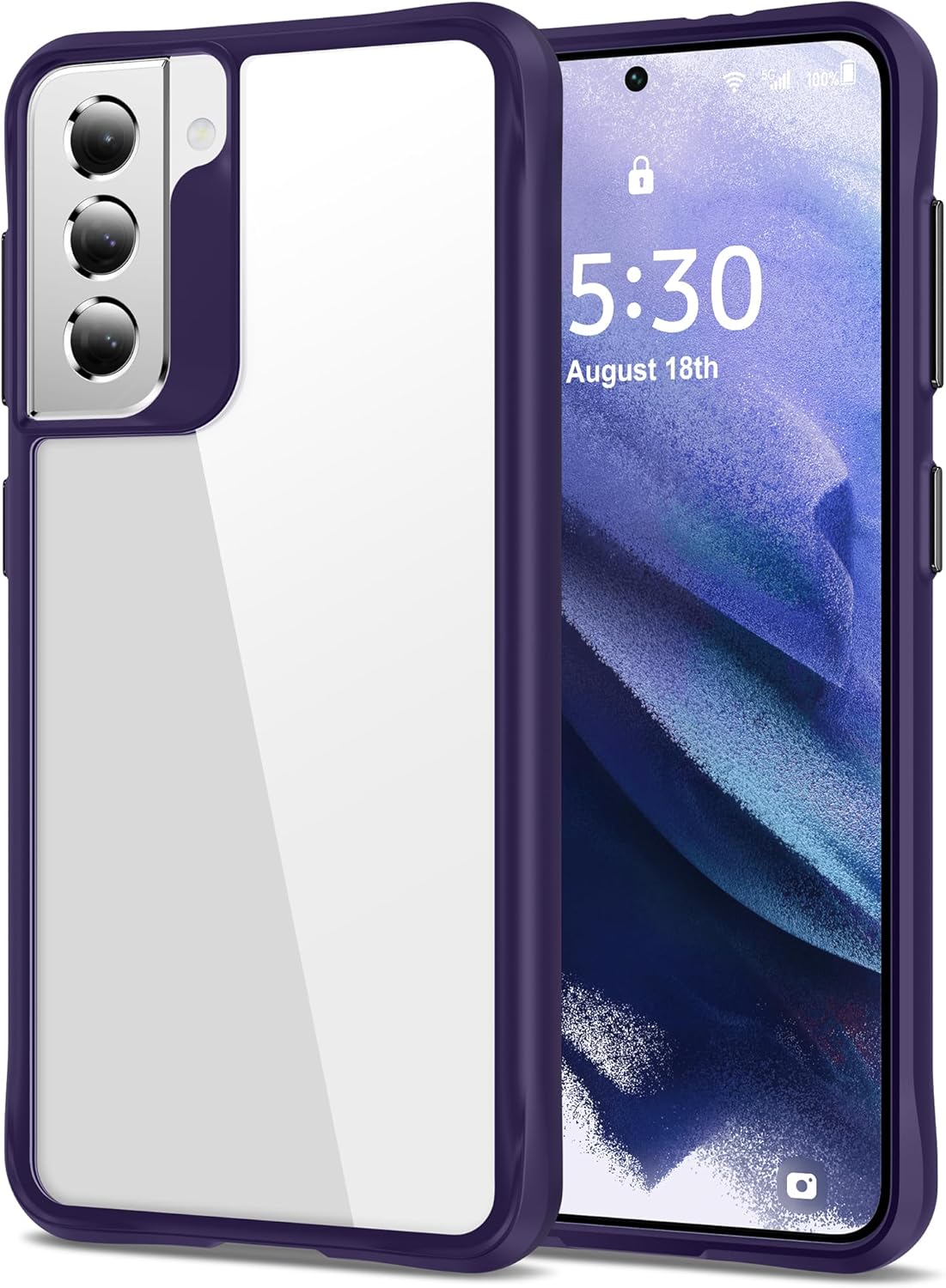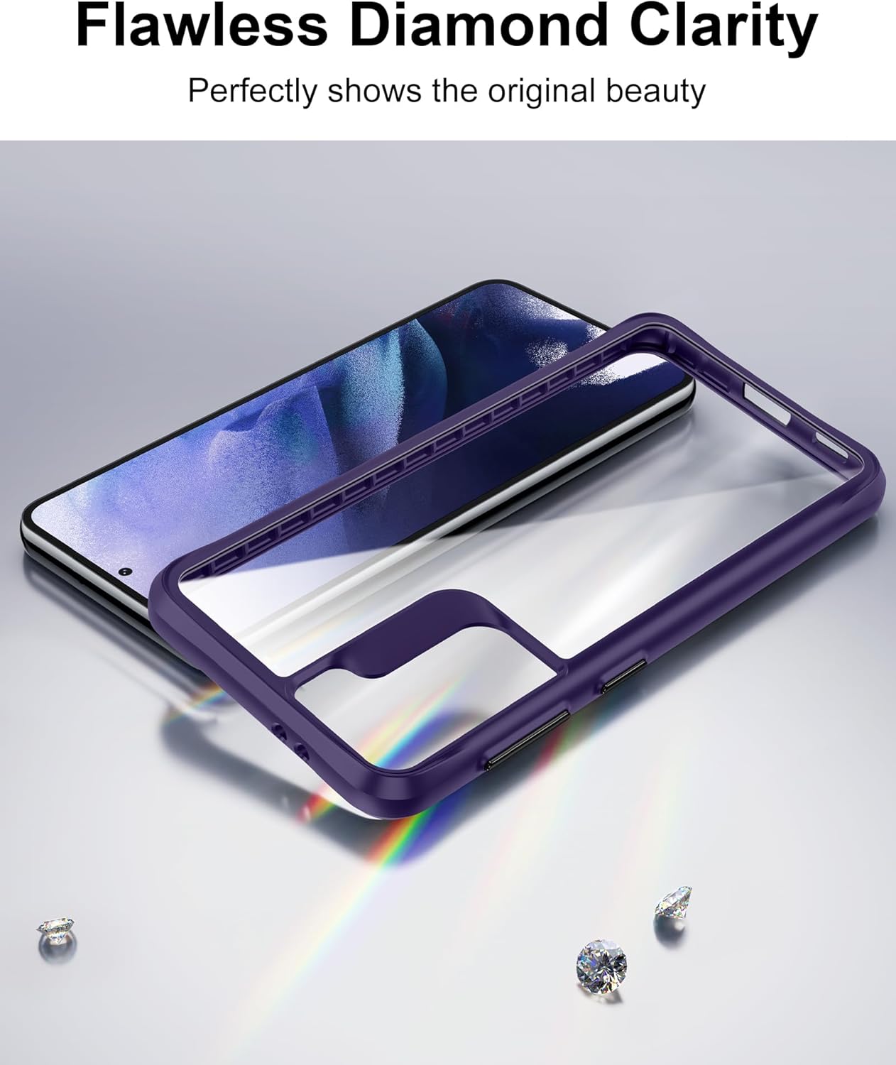 HOOMIL Кристално прозрачен калъф за Samsung Galaxy S22+ Plus 5G, никога пожълтяващ прозрачен - лилав
