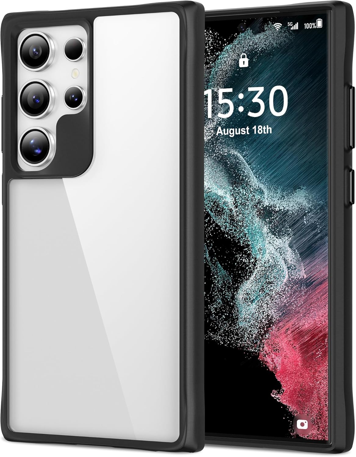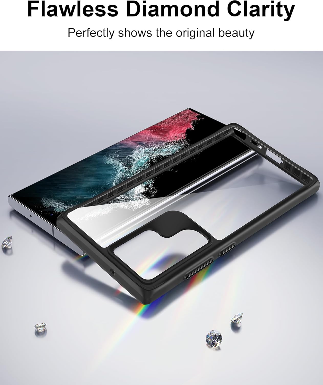HOOMIL Кристално прозрачен калъф за Samsung Galaxy S22 Ultra 5G, никога пожълтяващ прозрачен - черен