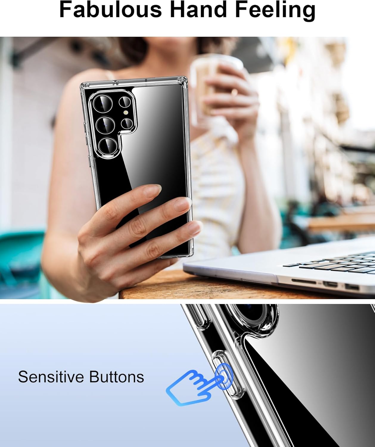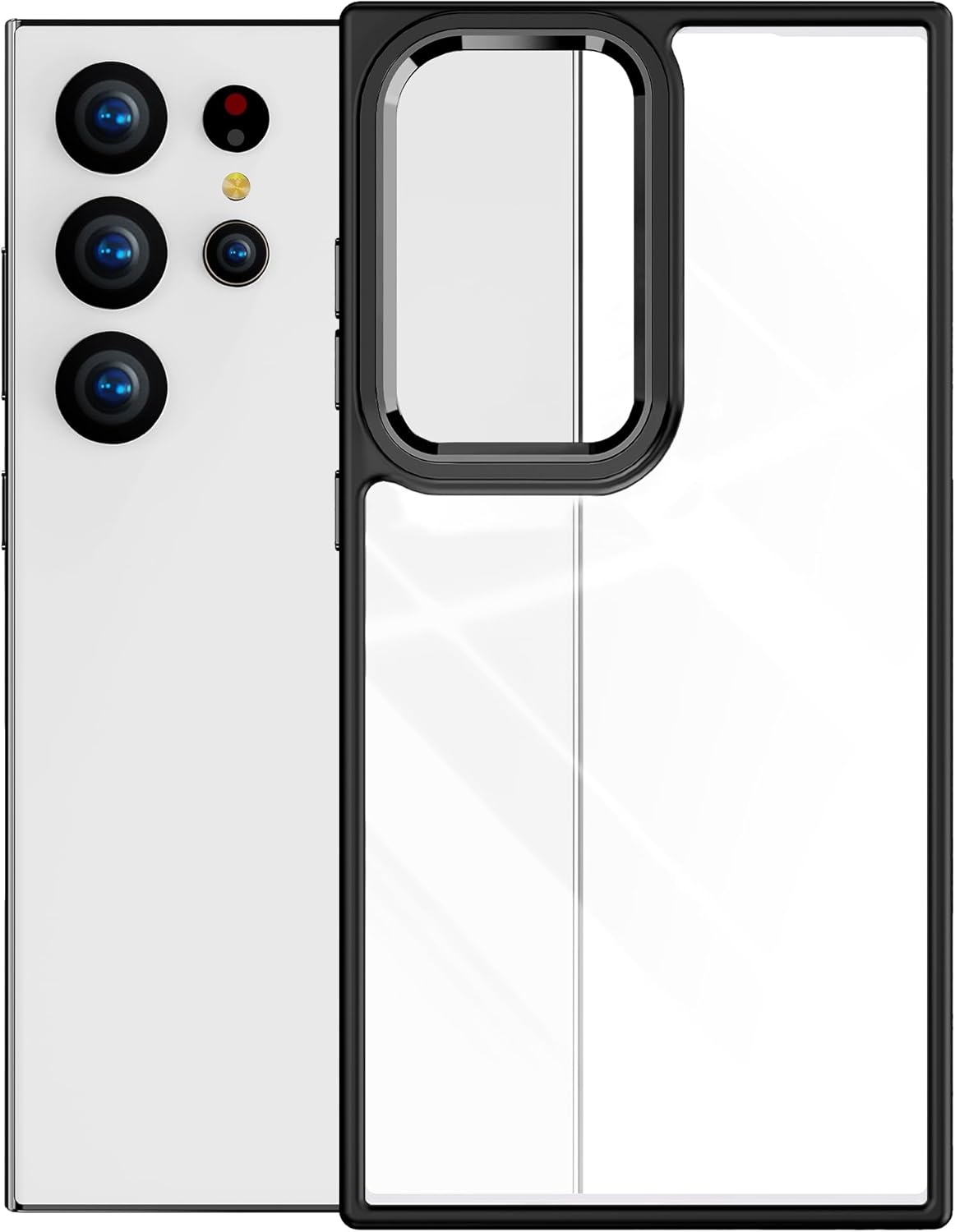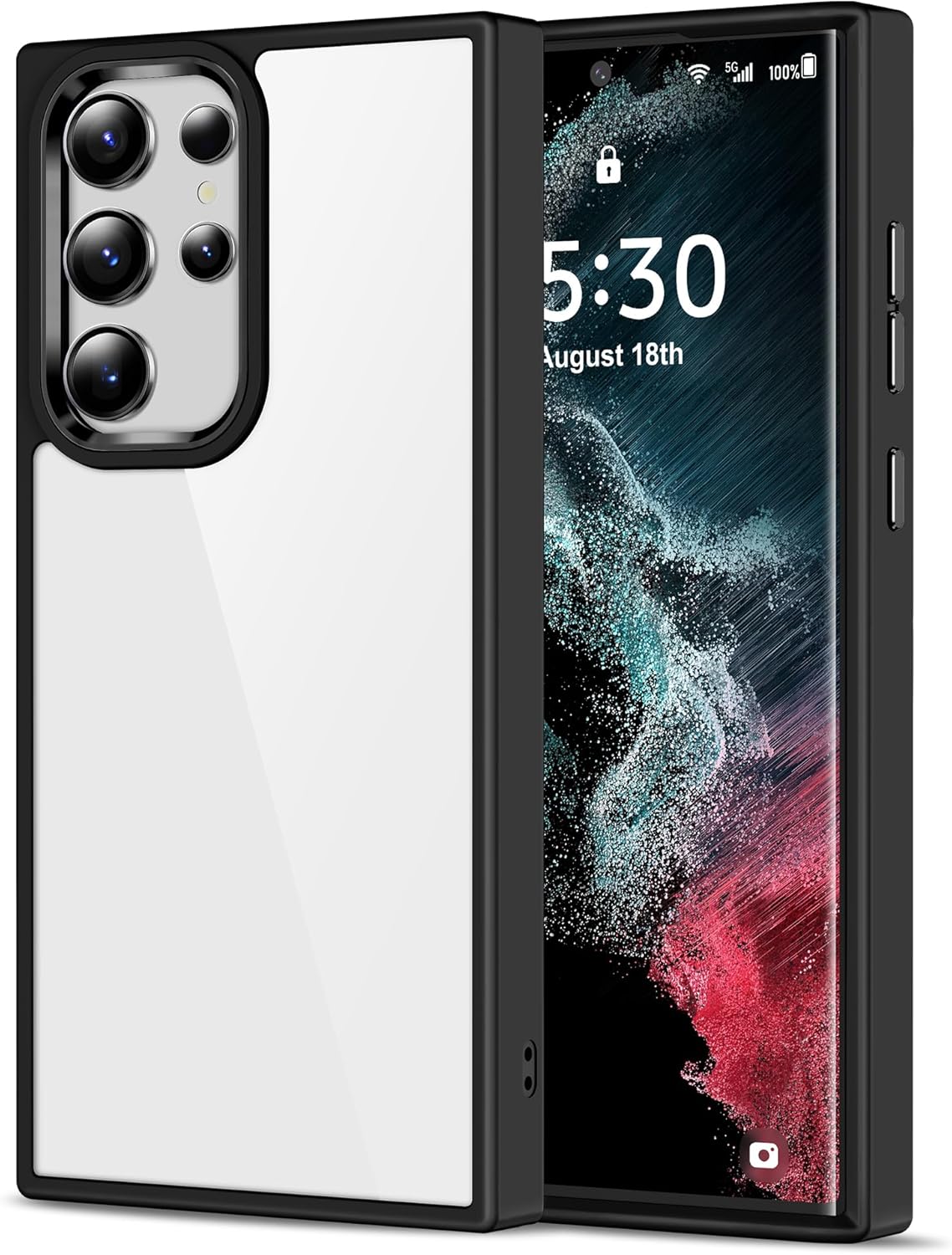 HOOMIL Кристално прозрачен калъф за Samsung Galaxy S22 Ultra 5G, никога пожълтяващ прозрачен - черен