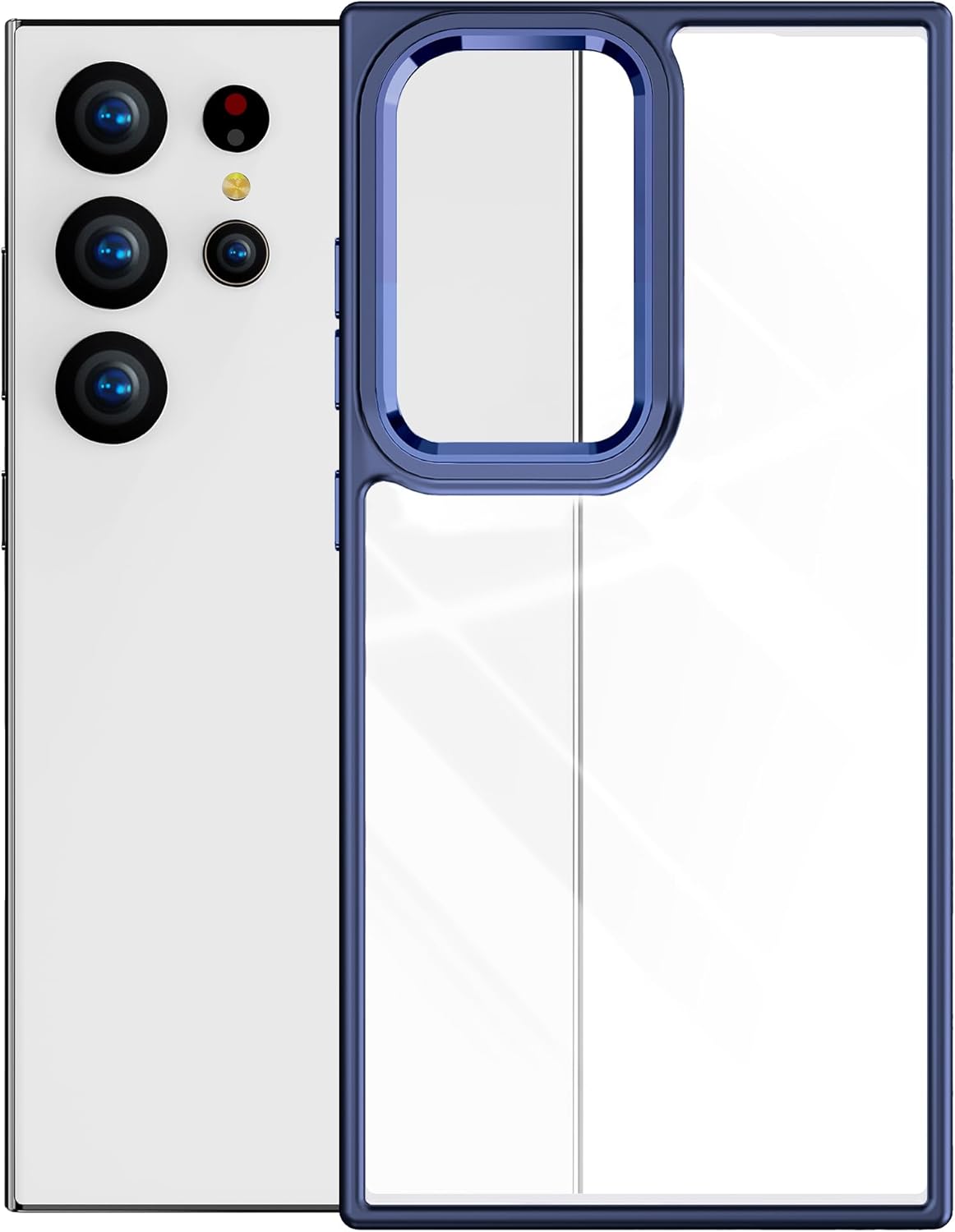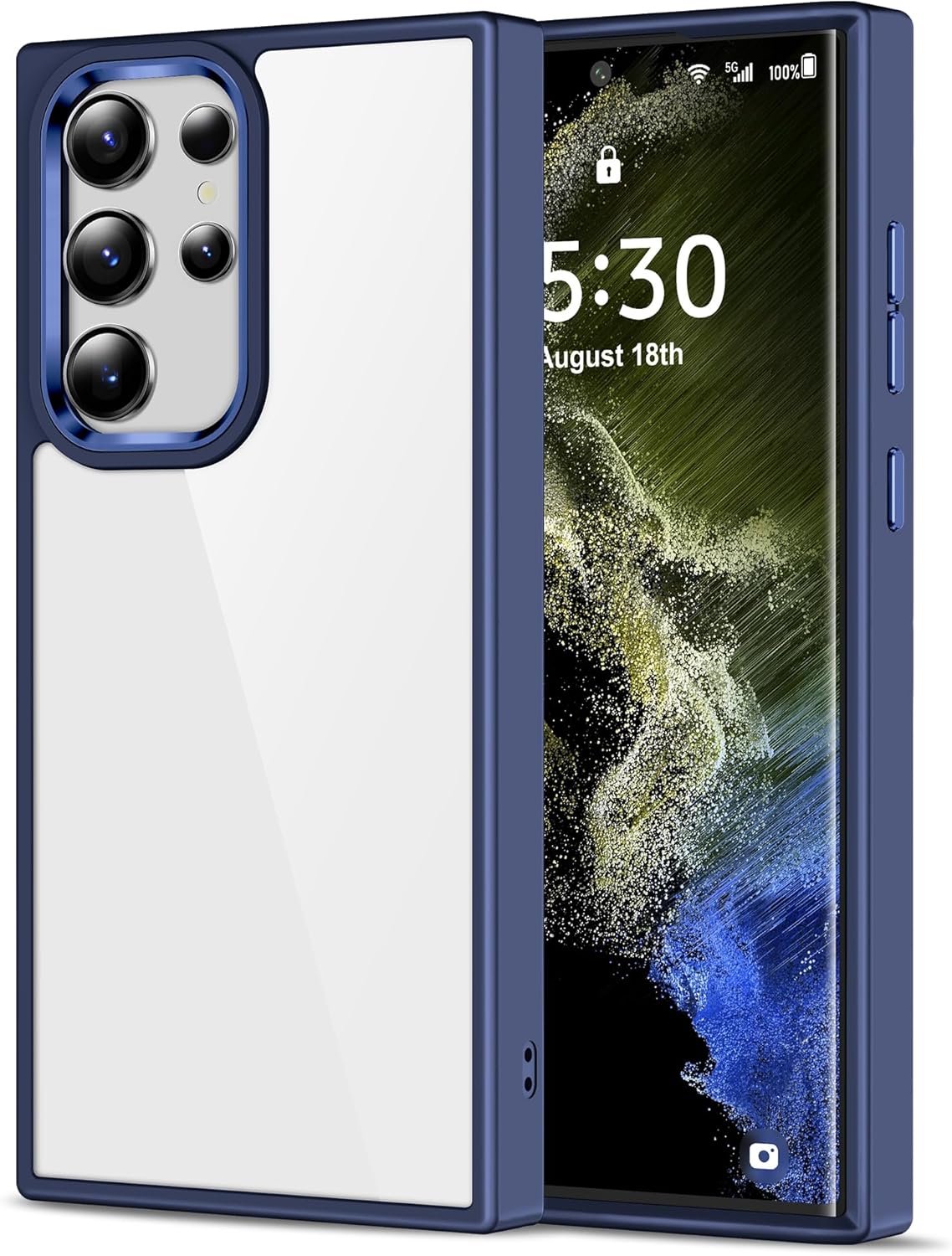 HOOMIL Кристално прозрачен калъф за Samsung Galaxy S22 Ultra 5G, никога пожълтяващ прозрачен - син