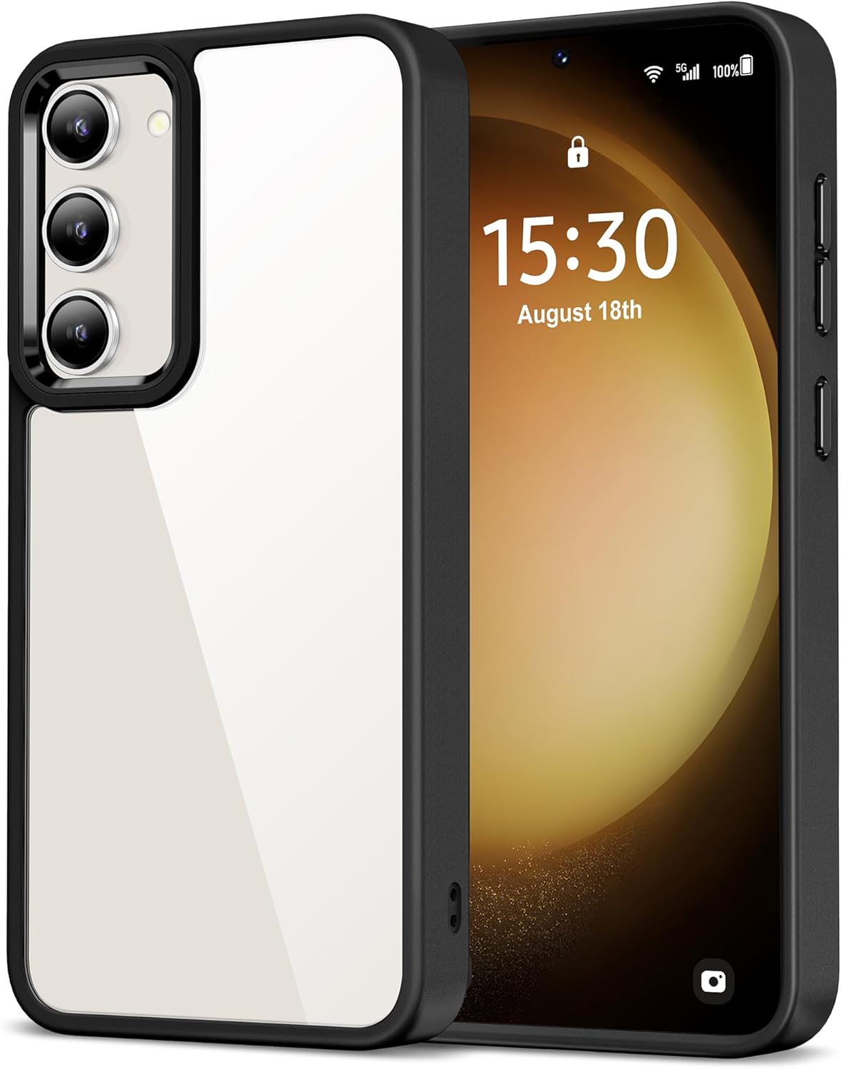 HOOMIL Кристално прозрачен калъф за Samsung Galaxy S23 5G, антижълт прозрачен калъф за мобилен телефон, удароустойчив защитен калъф - черен