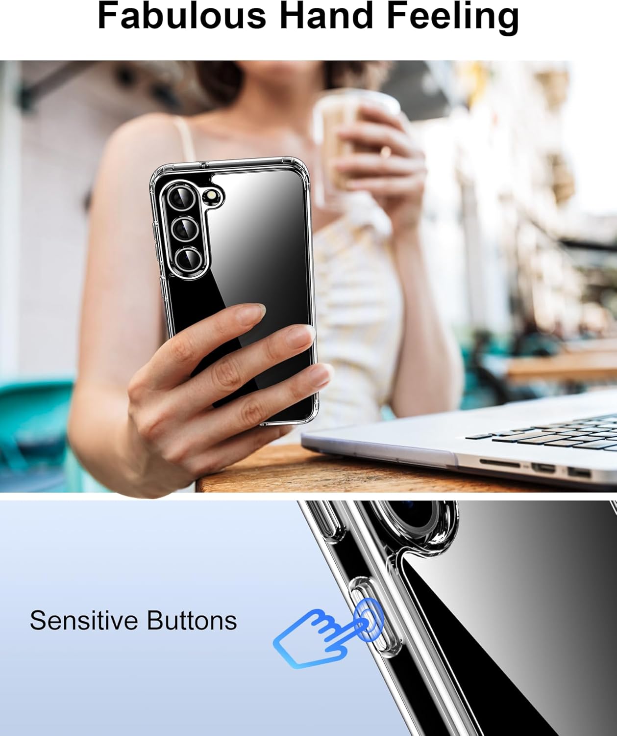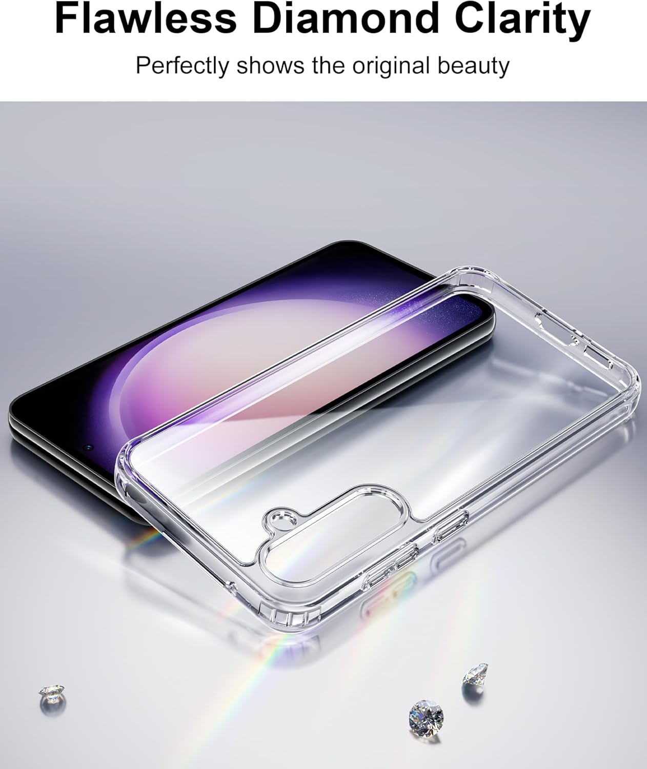 HOOMIL Кристално прозрачен калъф за Samsung Galaxy S23, антижълт прозрачен калъф за мобилен телефон, удароустойчив защитен калъф - прозрачен