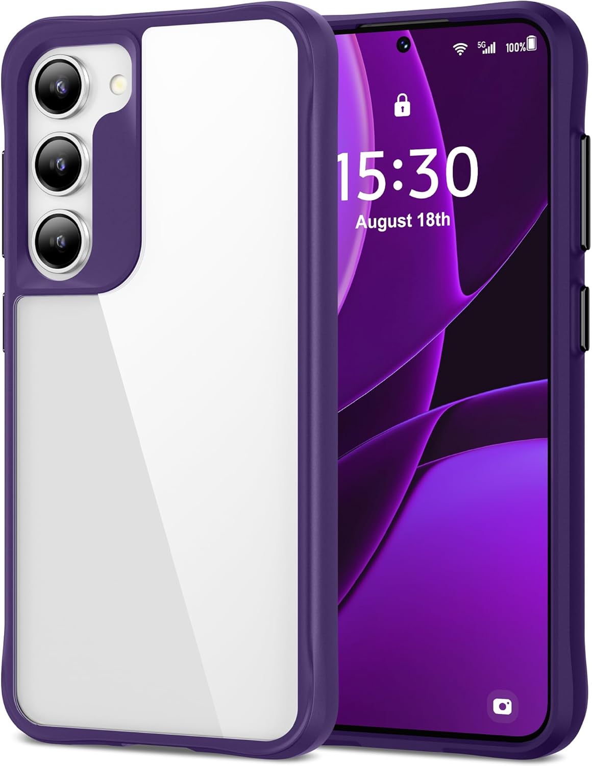 HOOMIL Кристално прозрачен калъф за Samsung Galaxy S23, антижълт прозрачен калъф за мобилен телефон, удароустойчив защитен калъф - прозрачно лилаво
