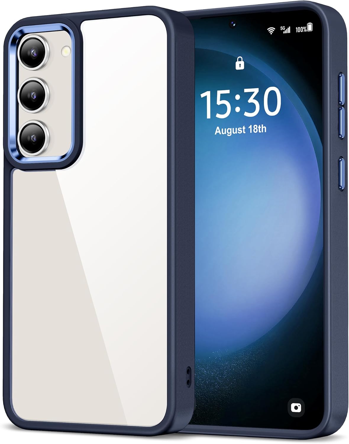 HOOMIL Кристално прозрачен калъф за Samsung Galaxy S23, антижълт прозрачен калъф за мобилен телефон, удароустойчив защитен калъф - син